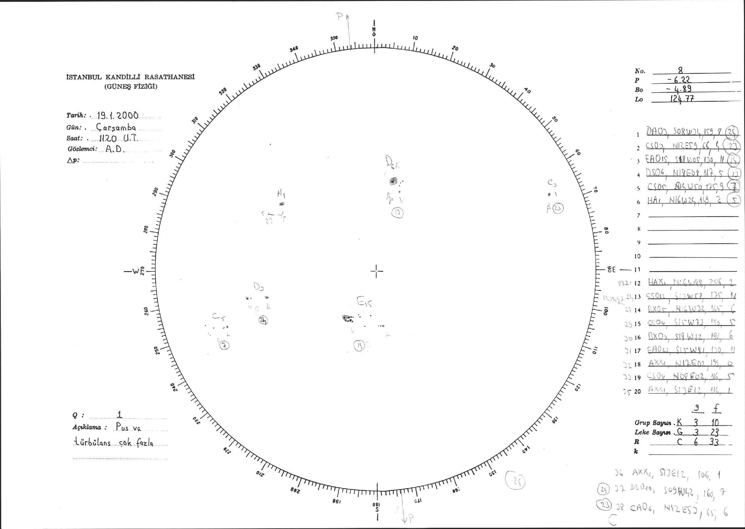 Güneş Lekesi Çizimi - 19.01.2000