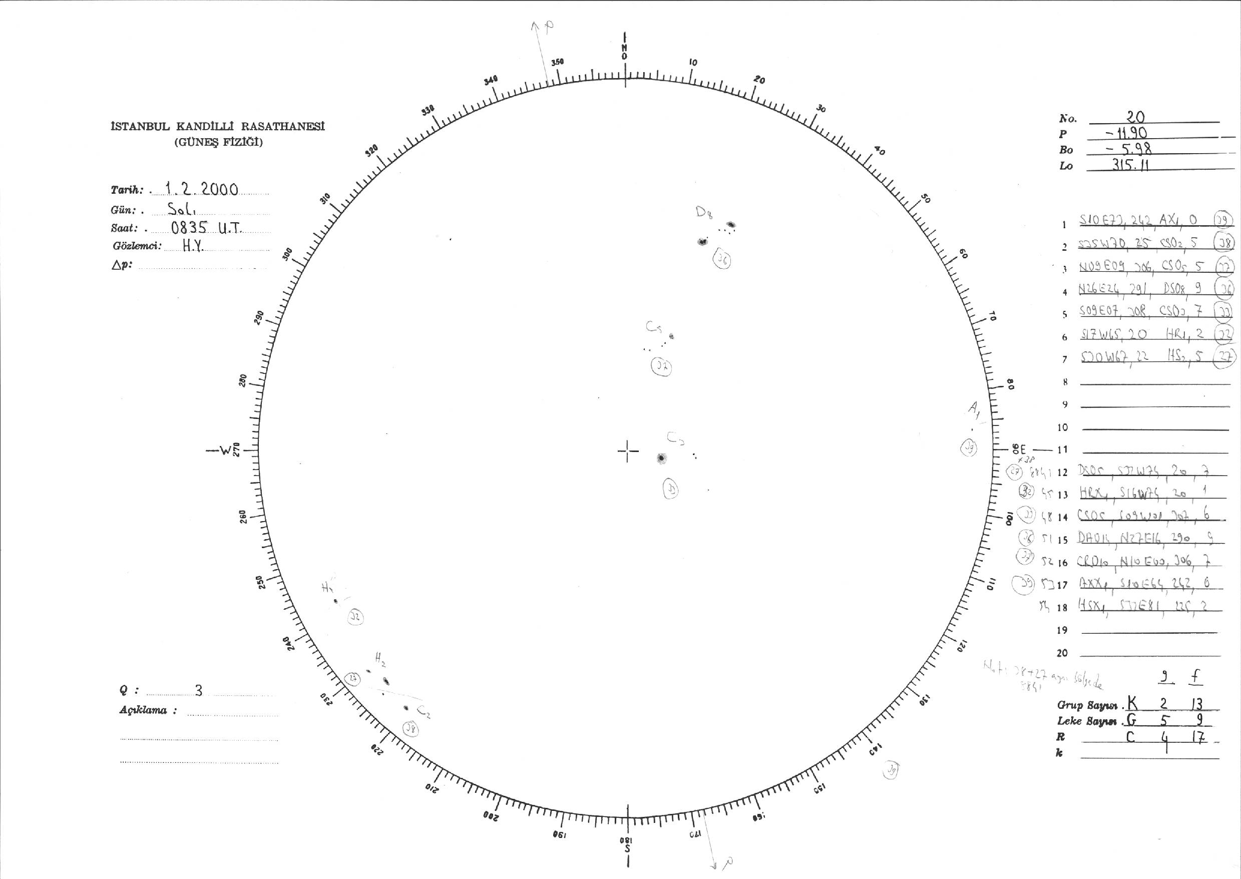 Güneş Lekesi Çizimi - 01.02.2000