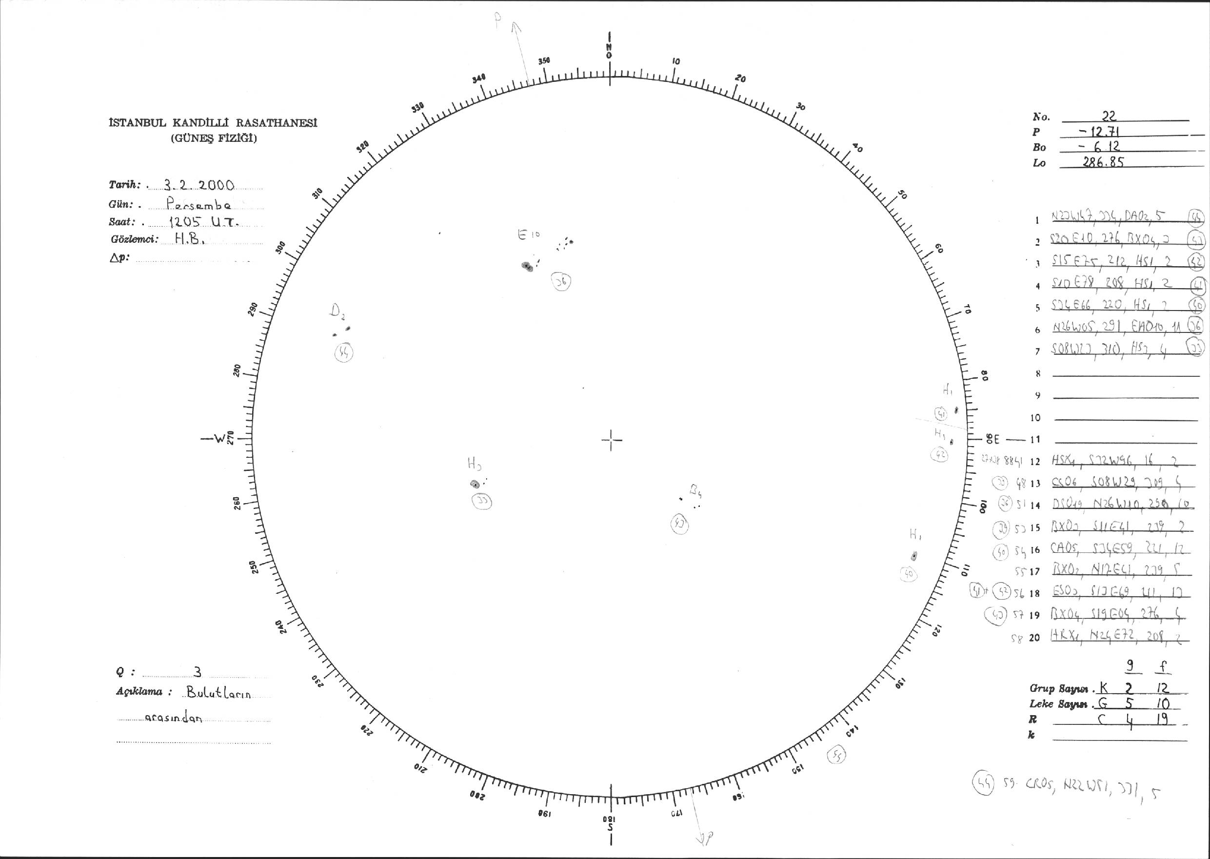 Güneş Lekesi Çizimi - 03.02.2000