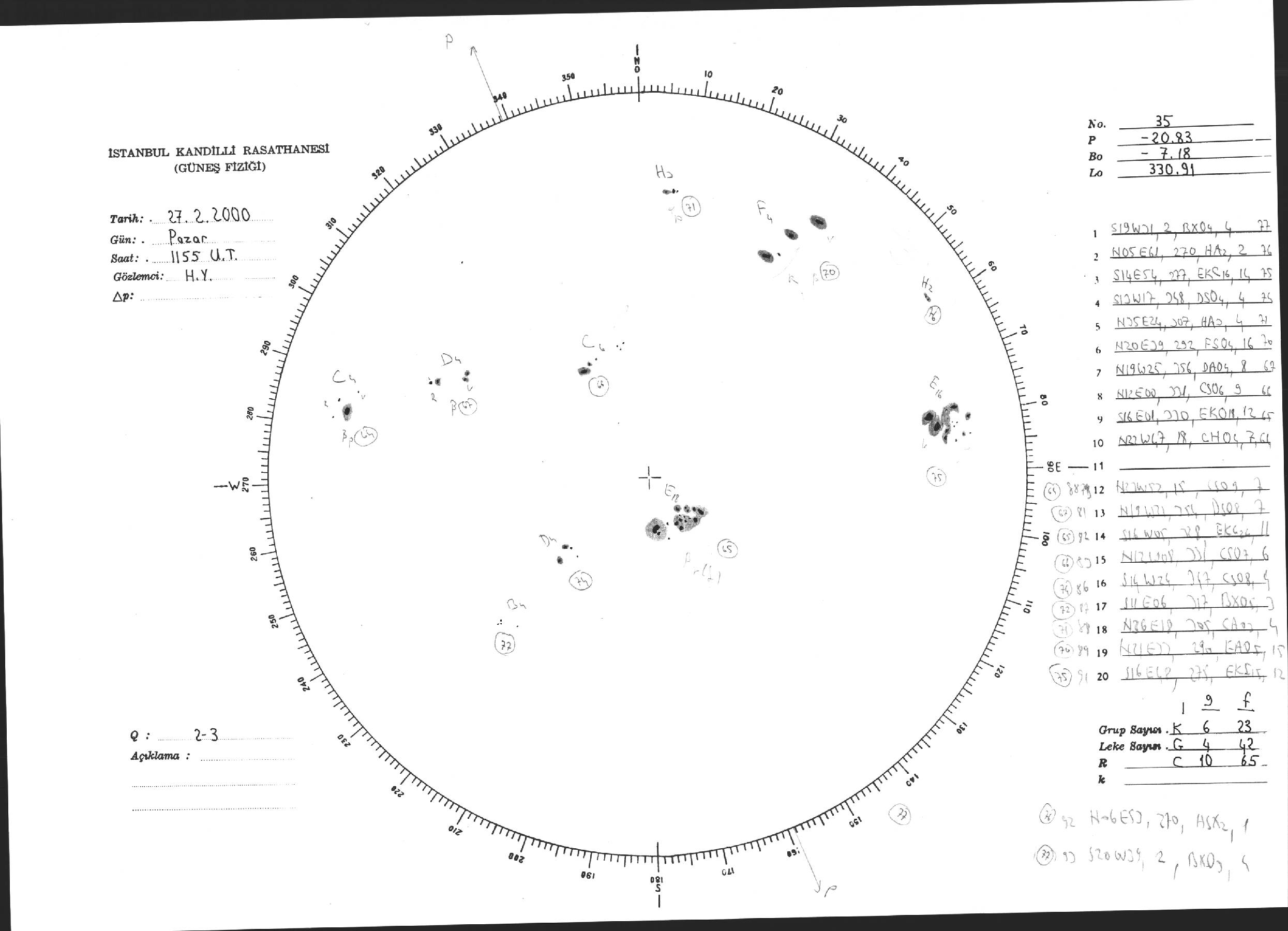 Güneş Lekesi Çizimi - 27.02.2000