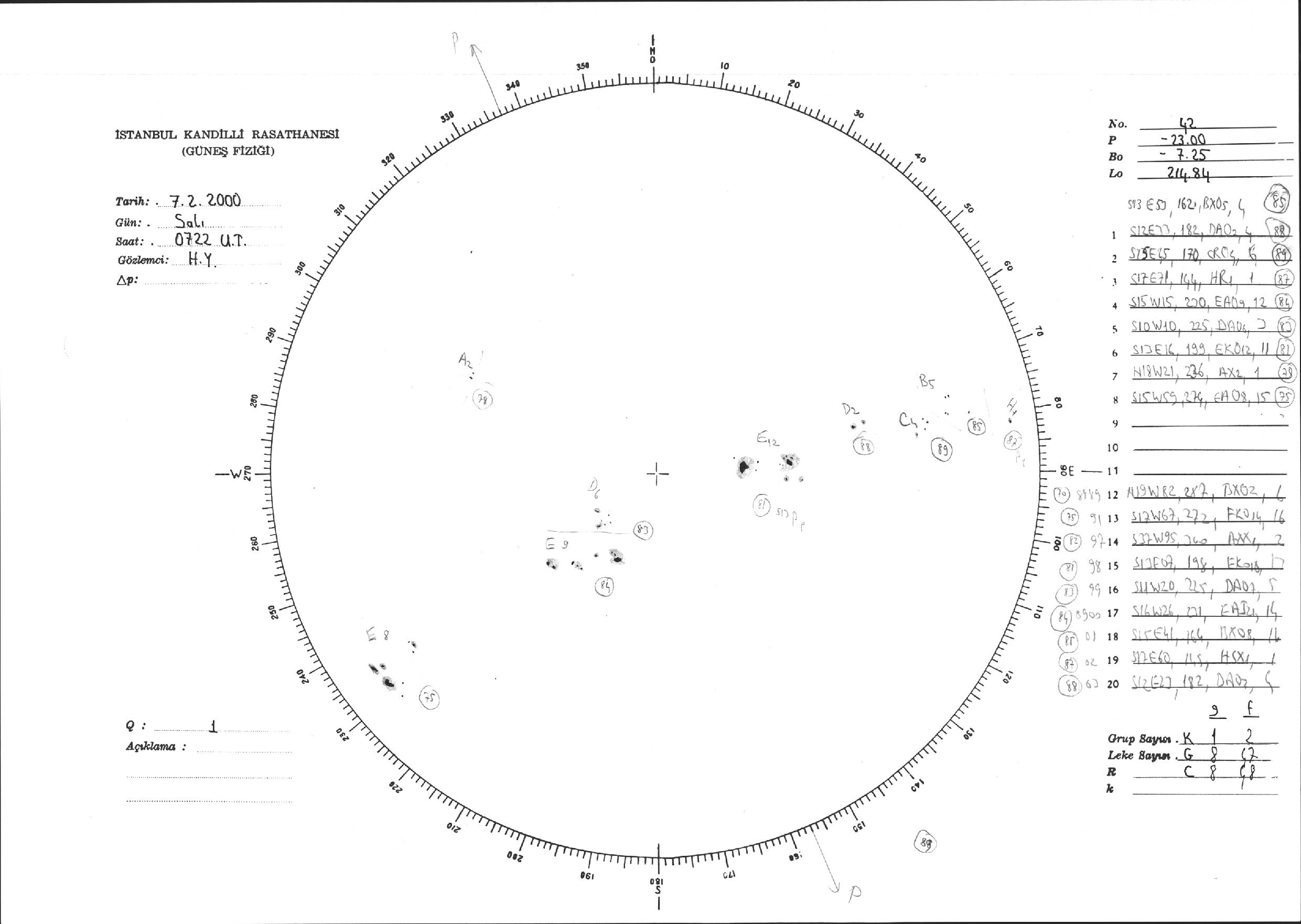 Güneş Lekesi Çizimi - 07.03.2000