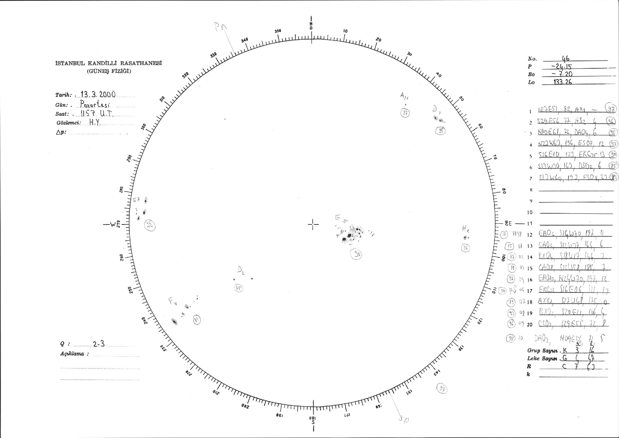 Güneş Lekesi Çizimi - 13.03.2000