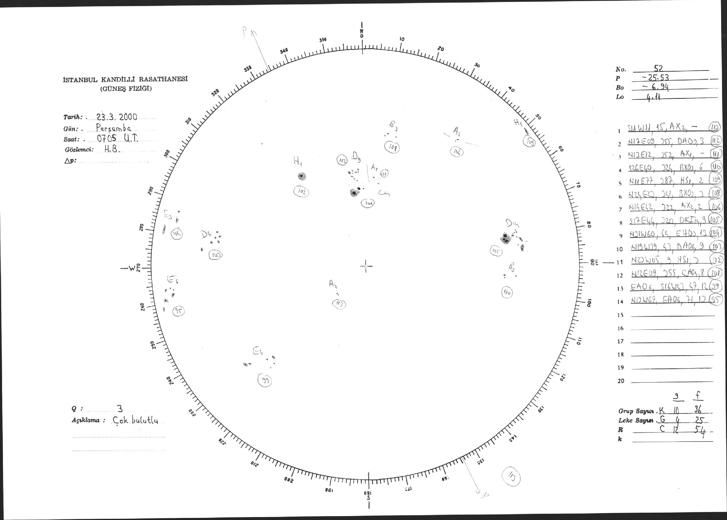 Güneş Lekesi Çizimi - 23.03.2000