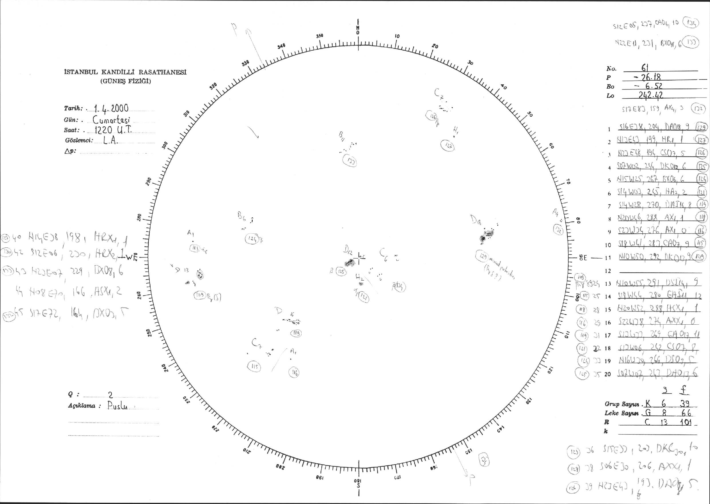 Güneş Lekesi Çizimi - 01.04.2000