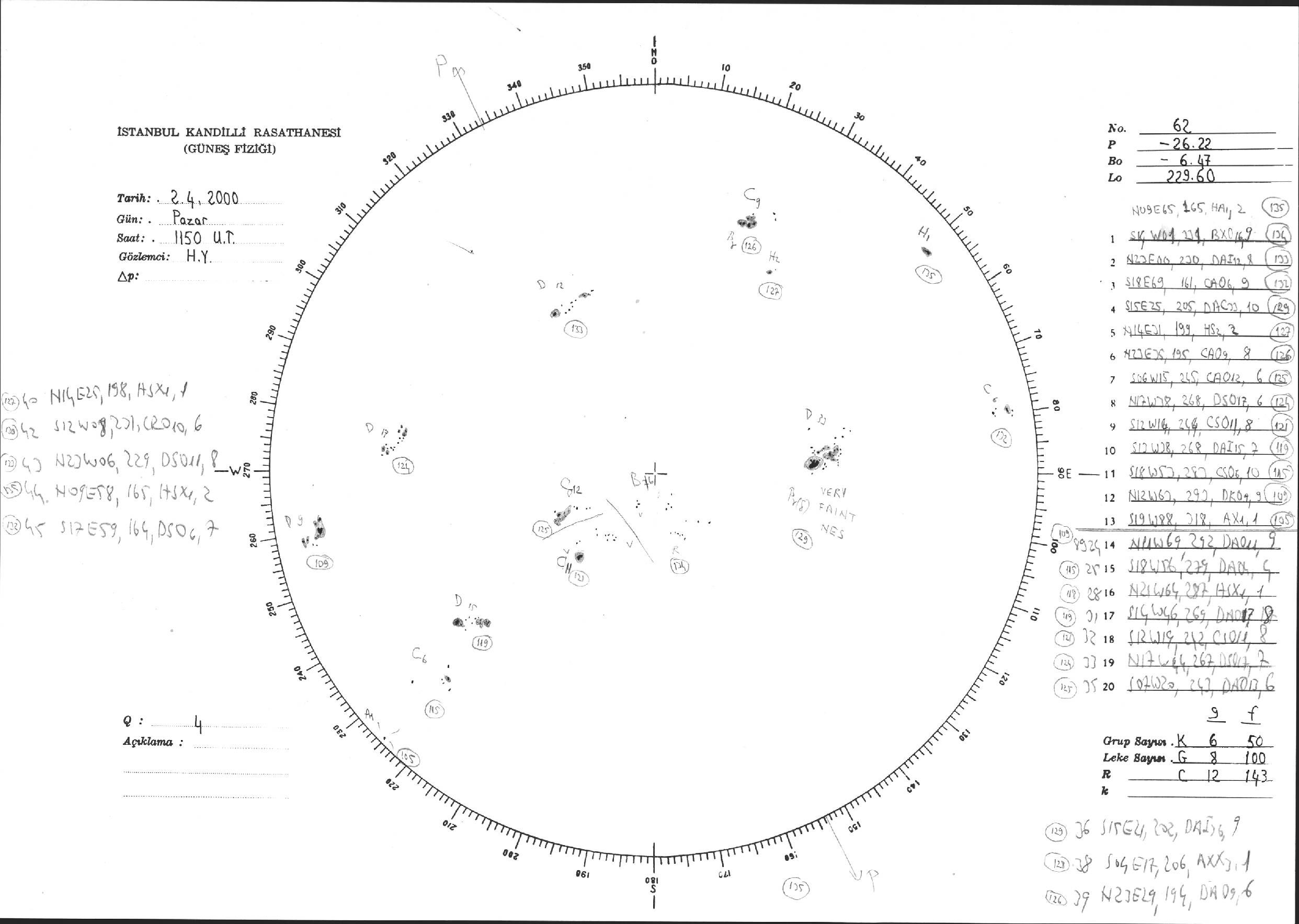 Güneş Lekesi Çizimi - 02.04.2000