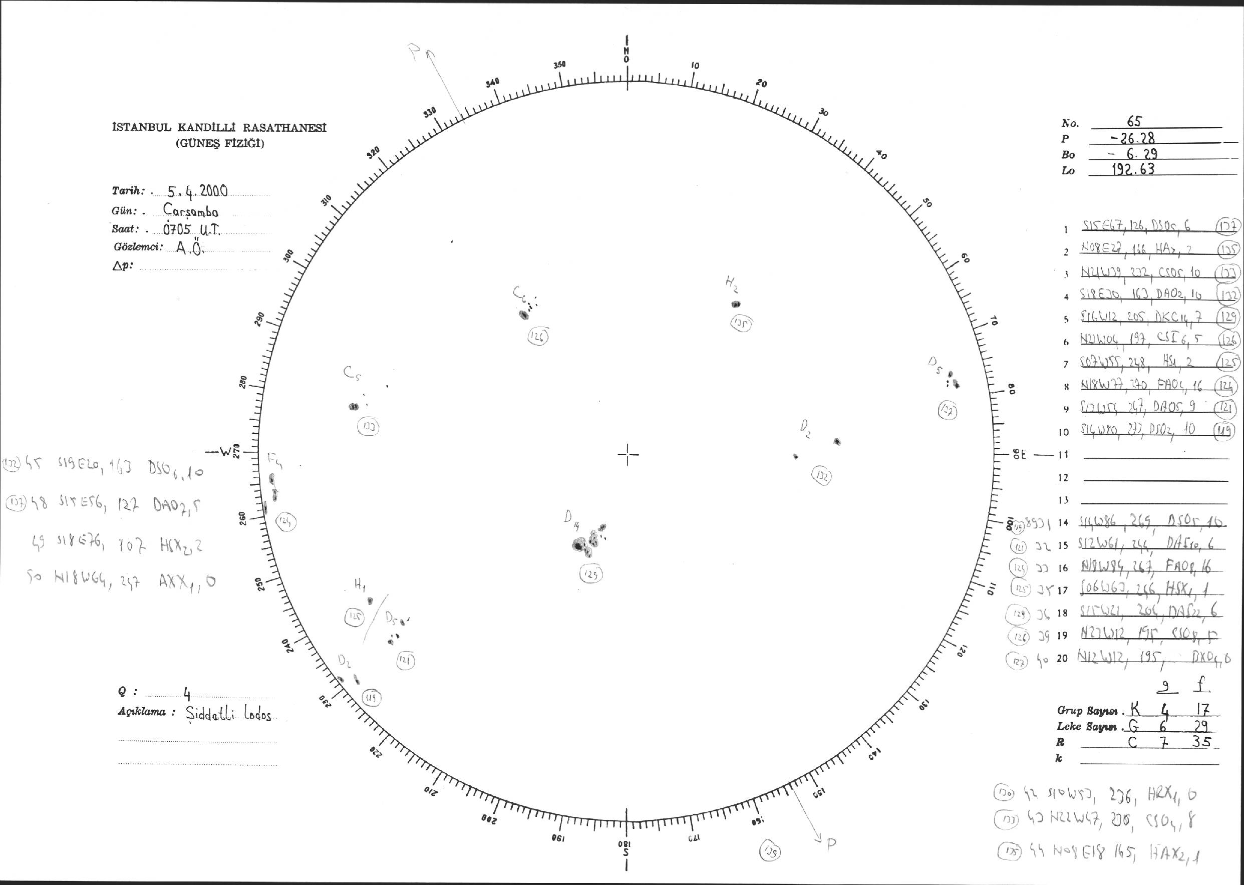 Güneş Lekesi Çizimi - 05.04.2000
