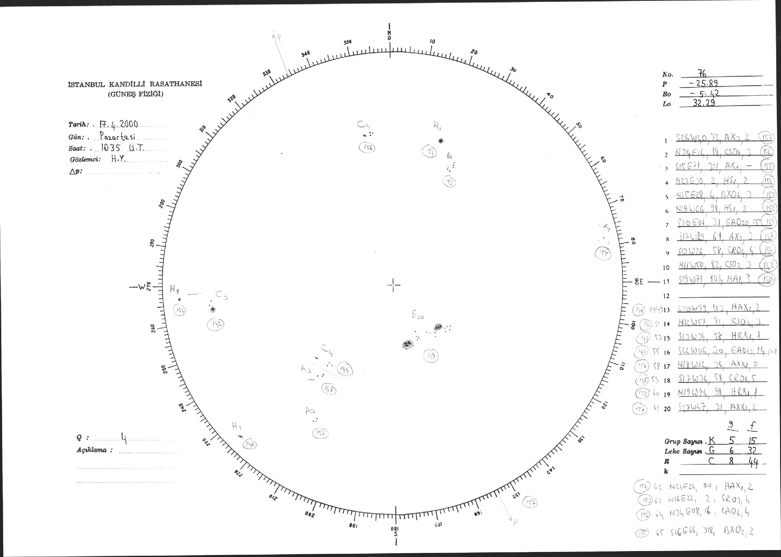 Güneş Lekesi Çizimi - 17.04.2000