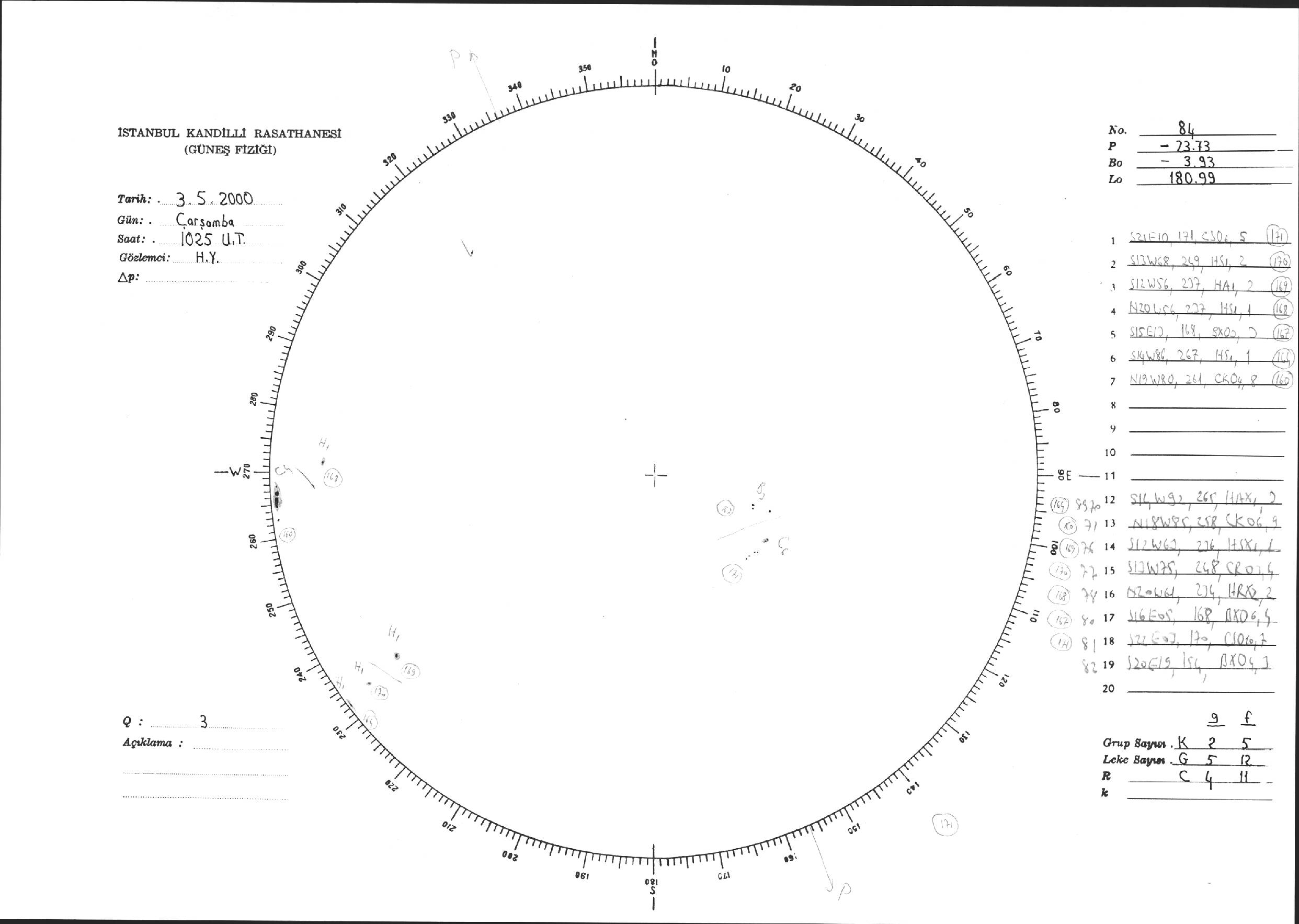 Güneş Lekesi Çizimi - 03.05.2000