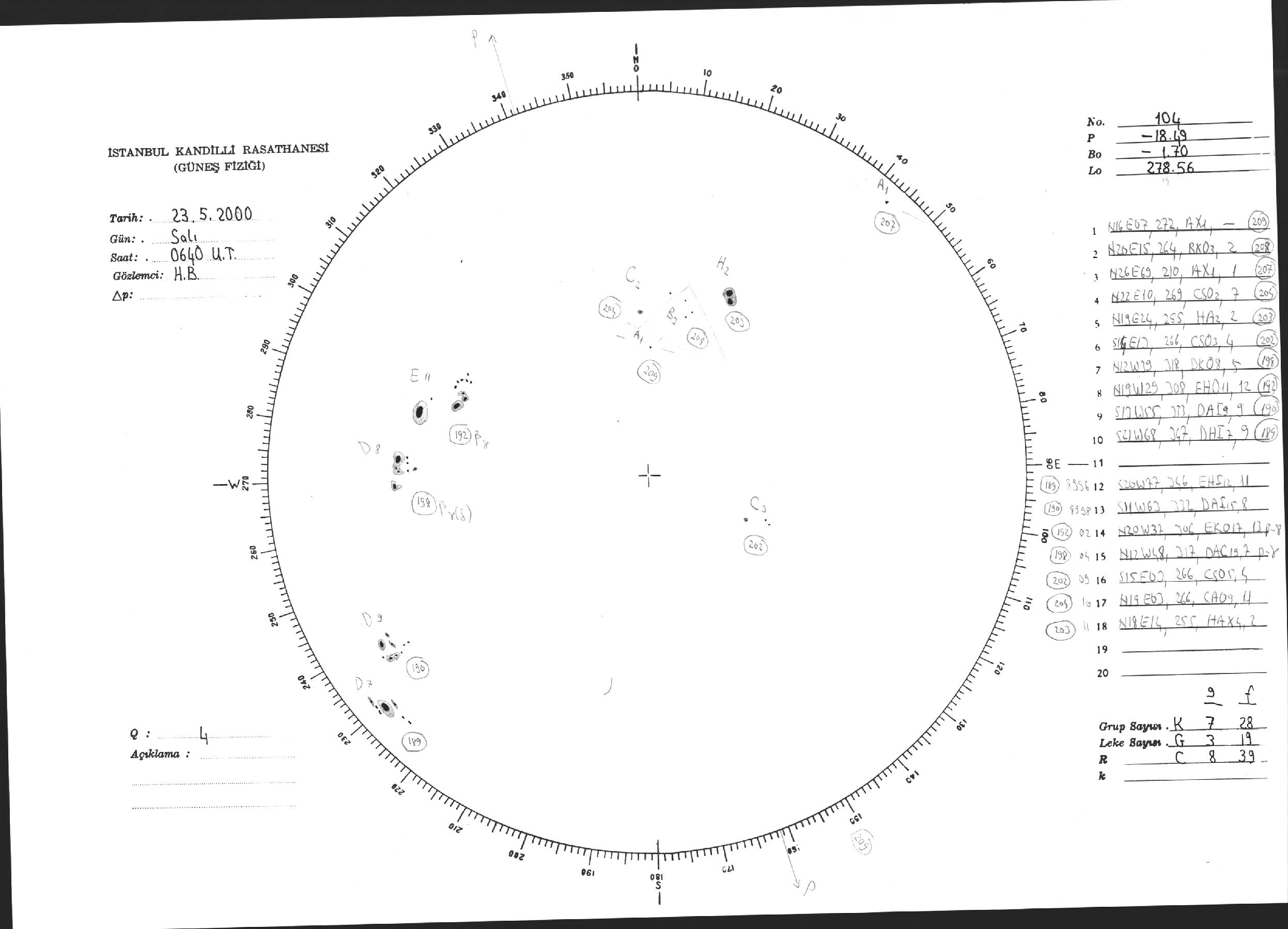 Güneş Lekesi Çizimi - 23.05.2000