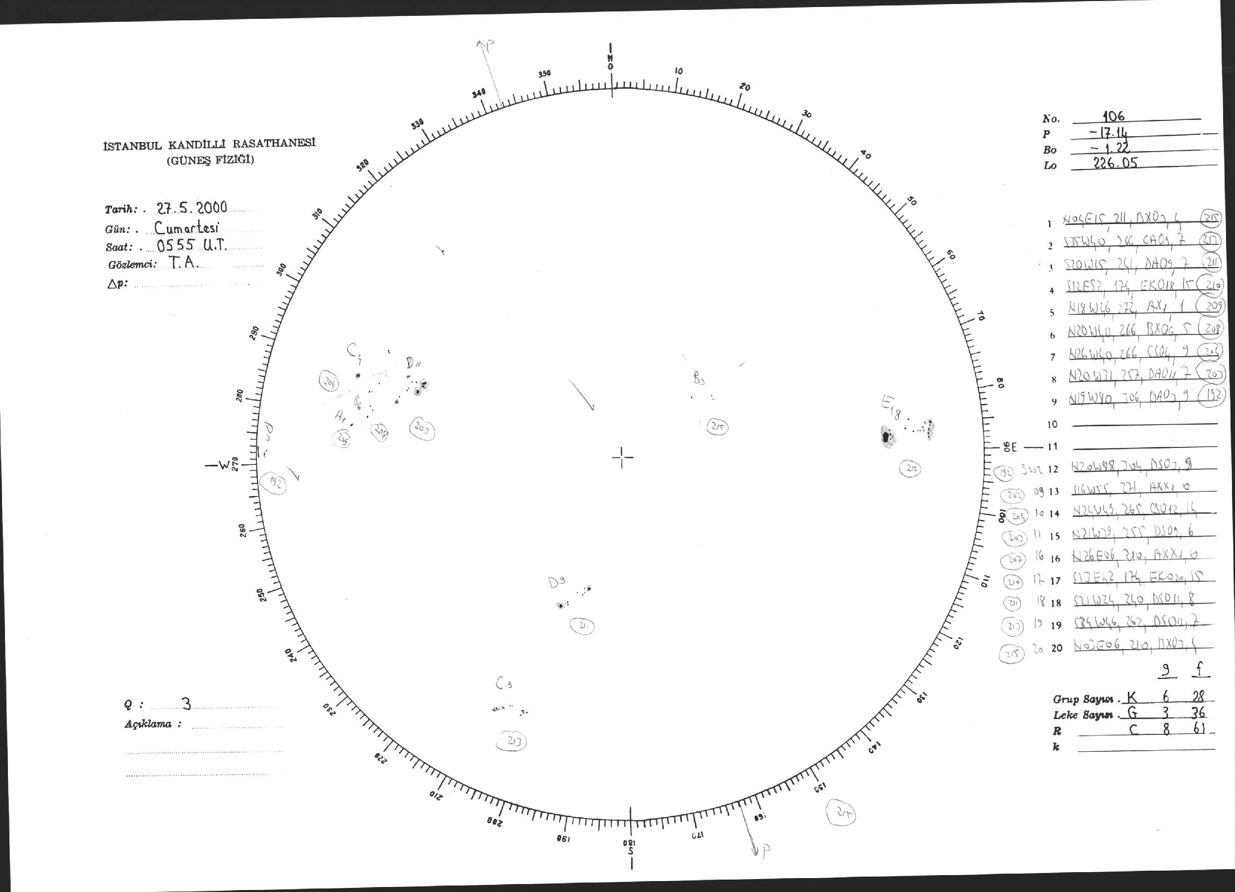 Güneş Lekesi Çizimi - 27.05.2000