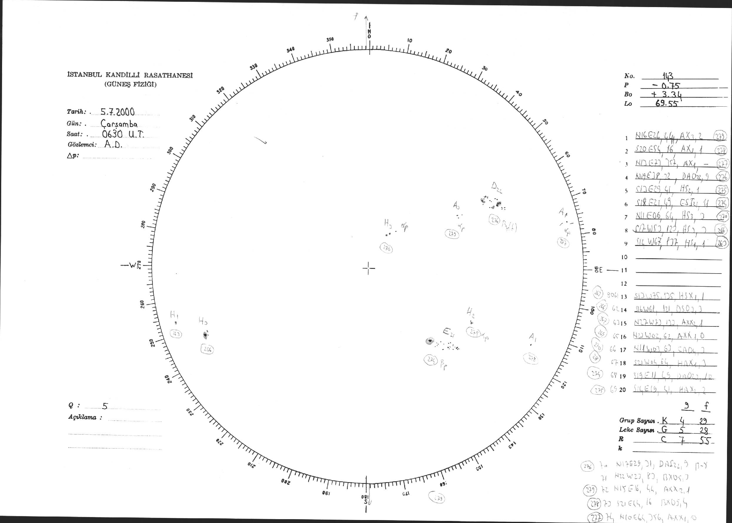 Güneş Lekesi Çizimi - 05.07.2000