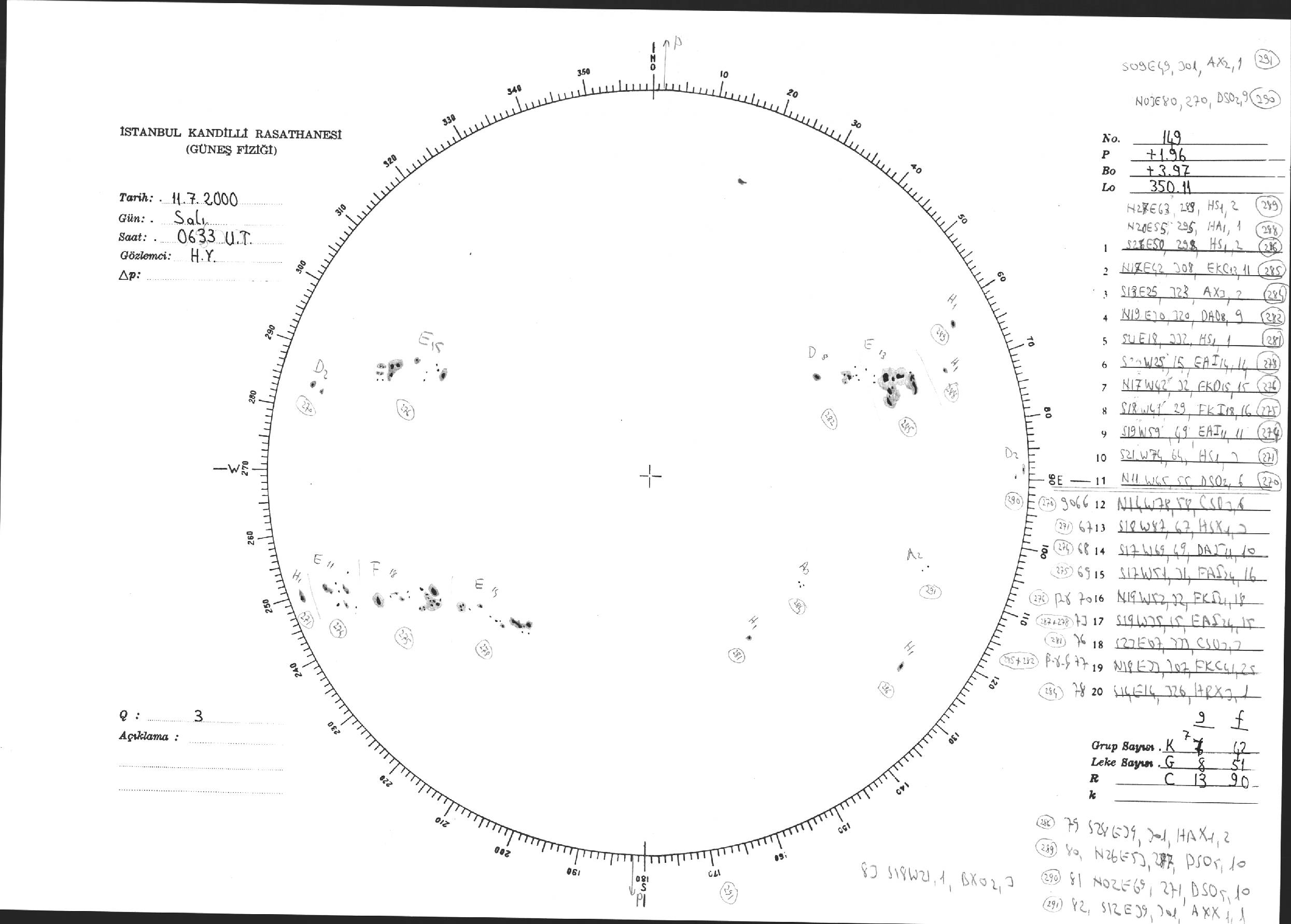 Güneş Lekesi Çizimi - 11.07.2000