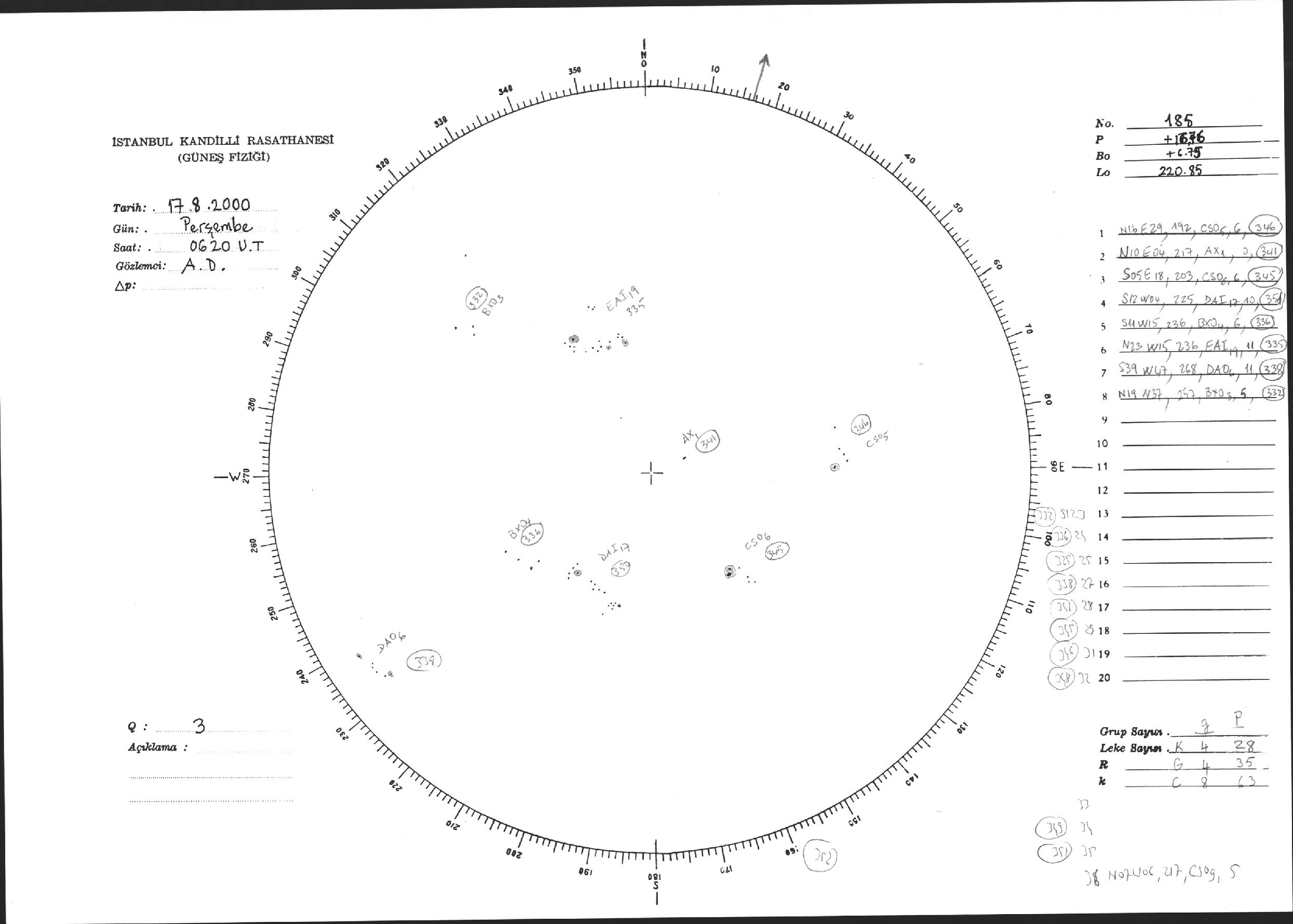 Güneş Lekesi Çizimi - 17.08.2000