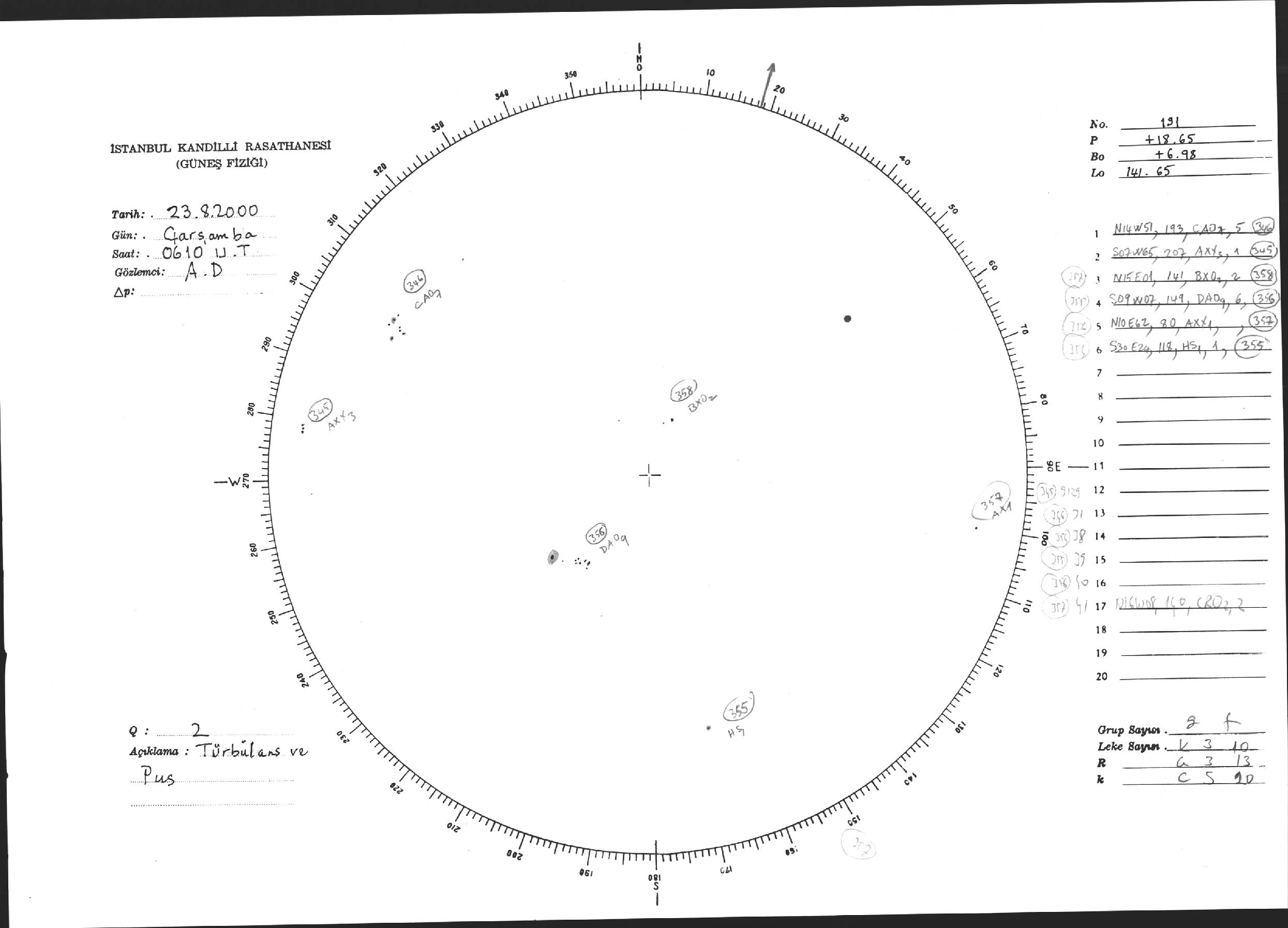 Güneş Lekesi Çizimi - 23.08.2000