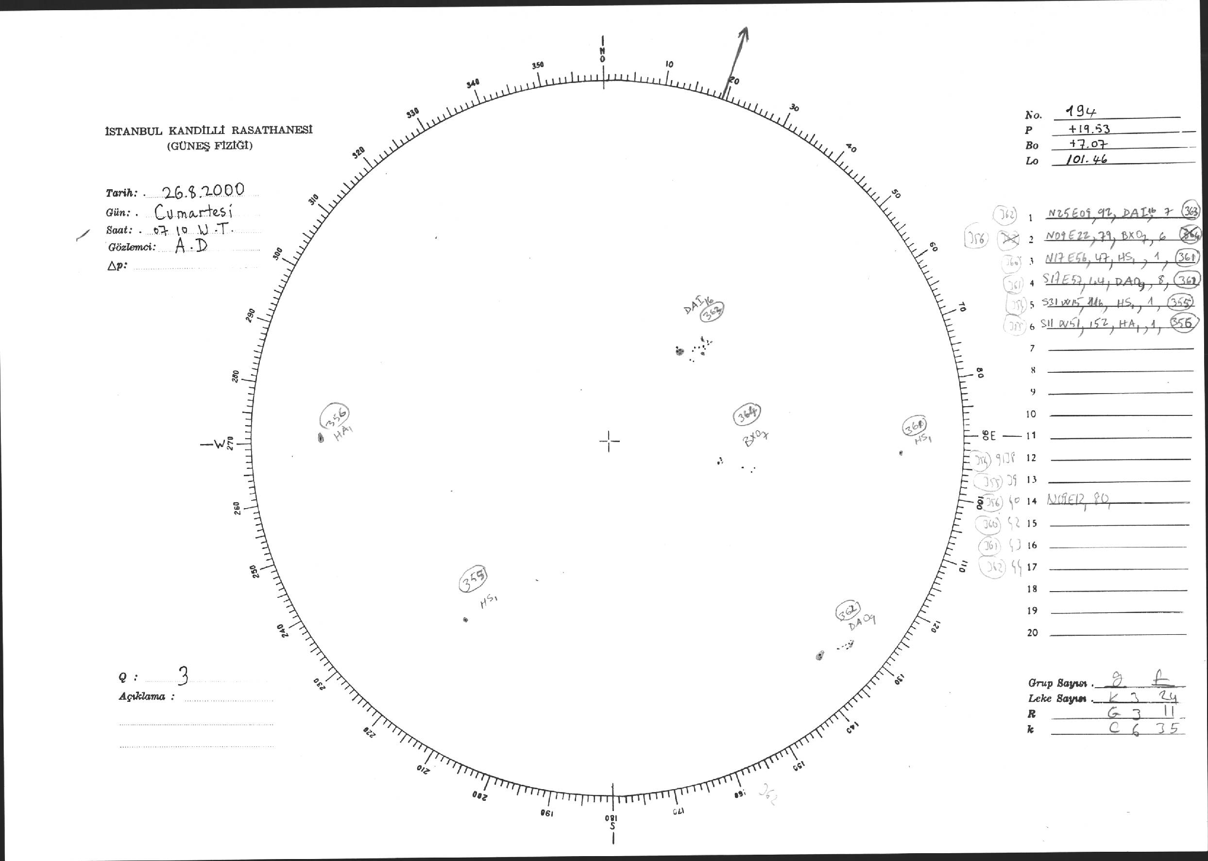 Güneş Lekesi Çizimi - 26.08.2000