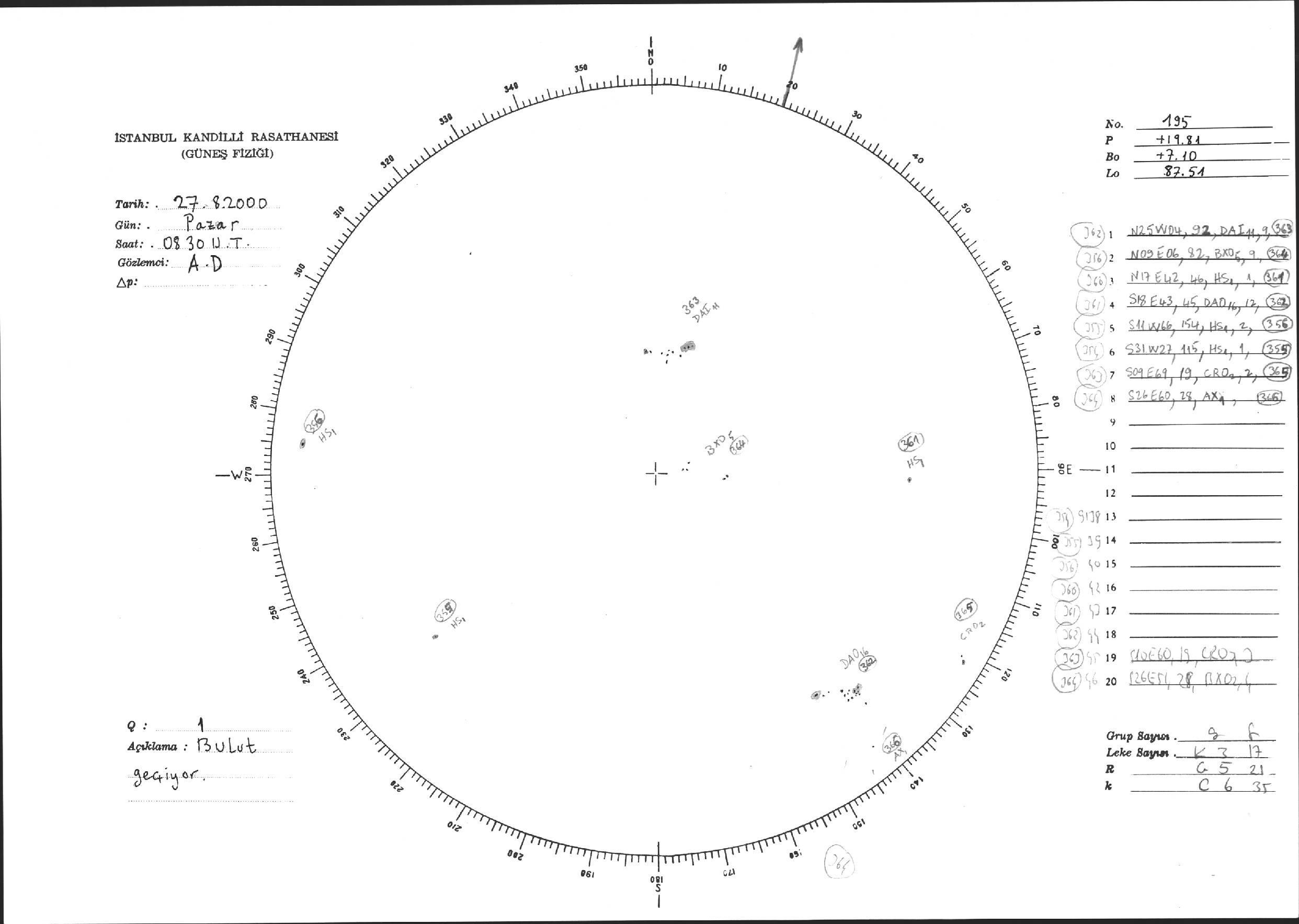 Güneş Lekesi Çizimi - 27.08.2000