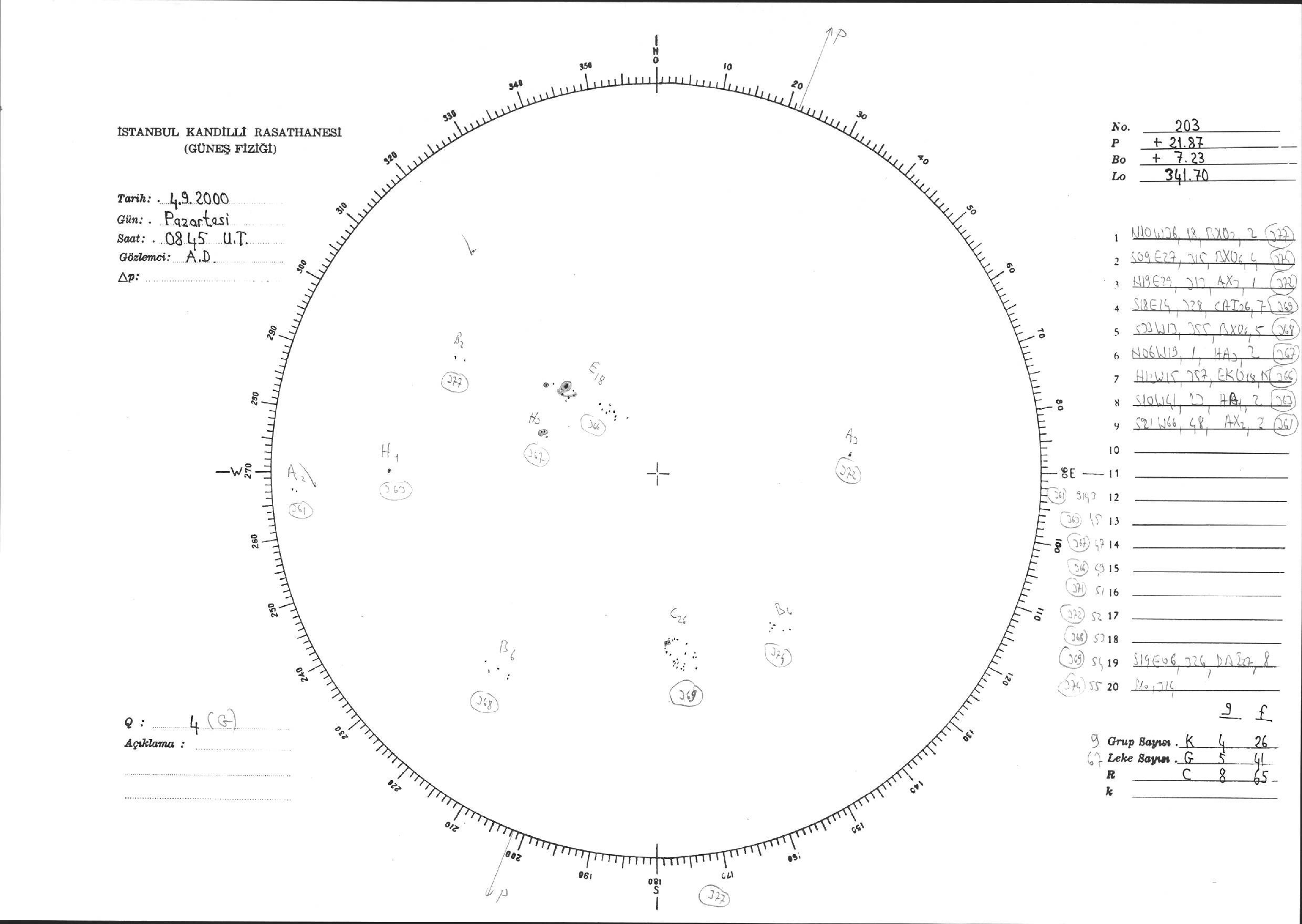 Güneş Lekesi Çizimi - 04.09.2000