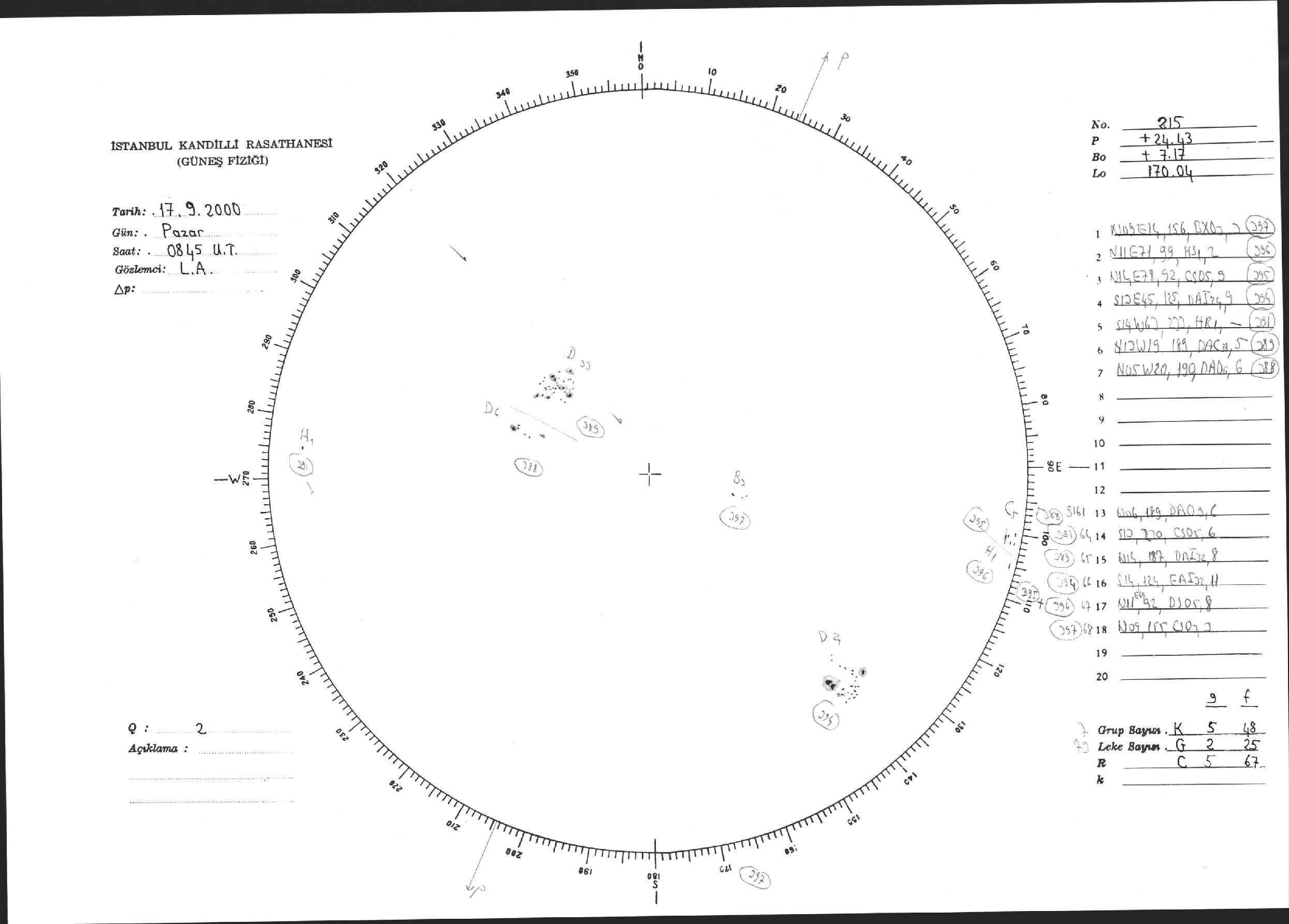 Güneş Lekesi Çizimi - 17.09.2000