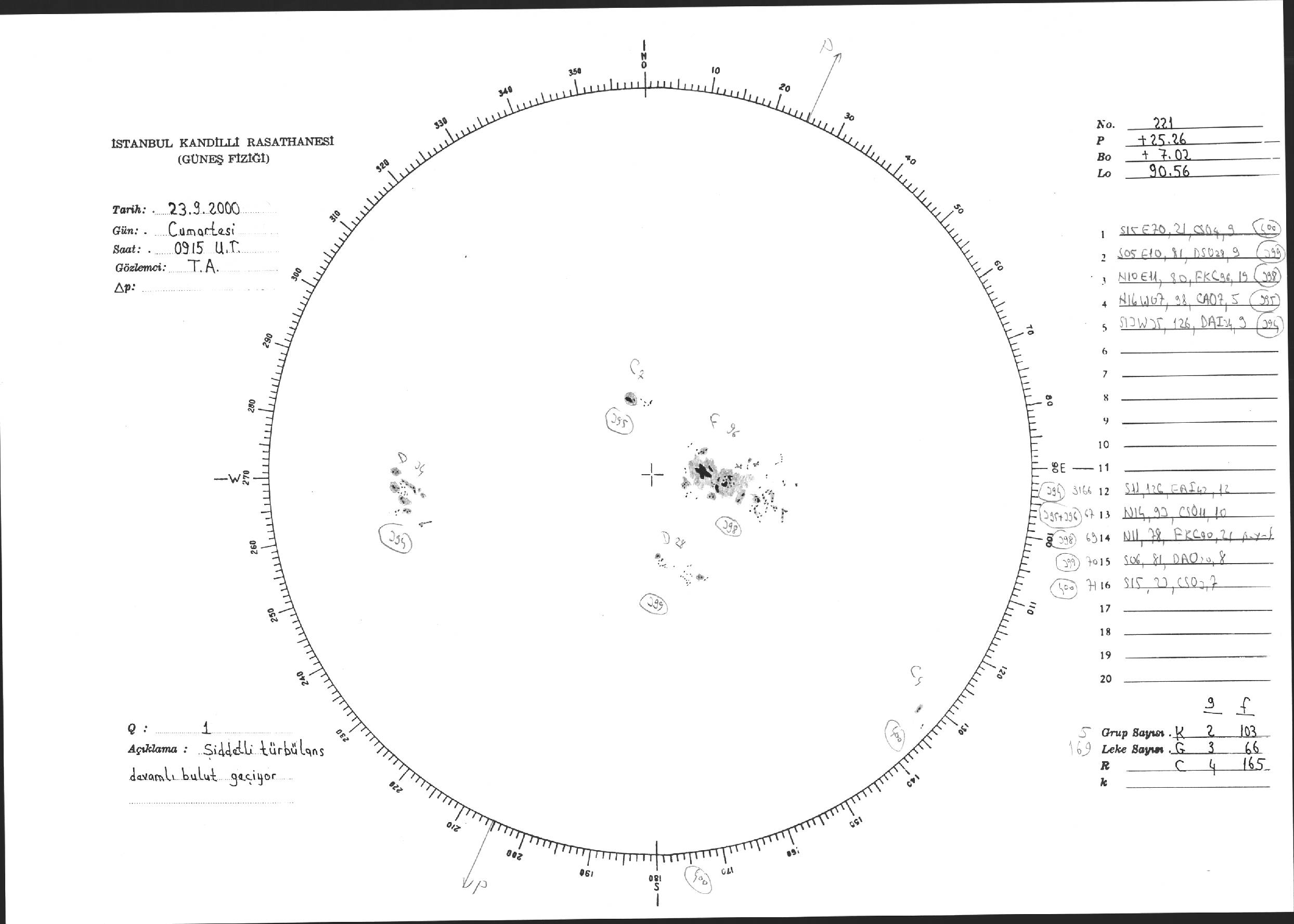 Güneş Lekesi Çizimi - 23.09.2000