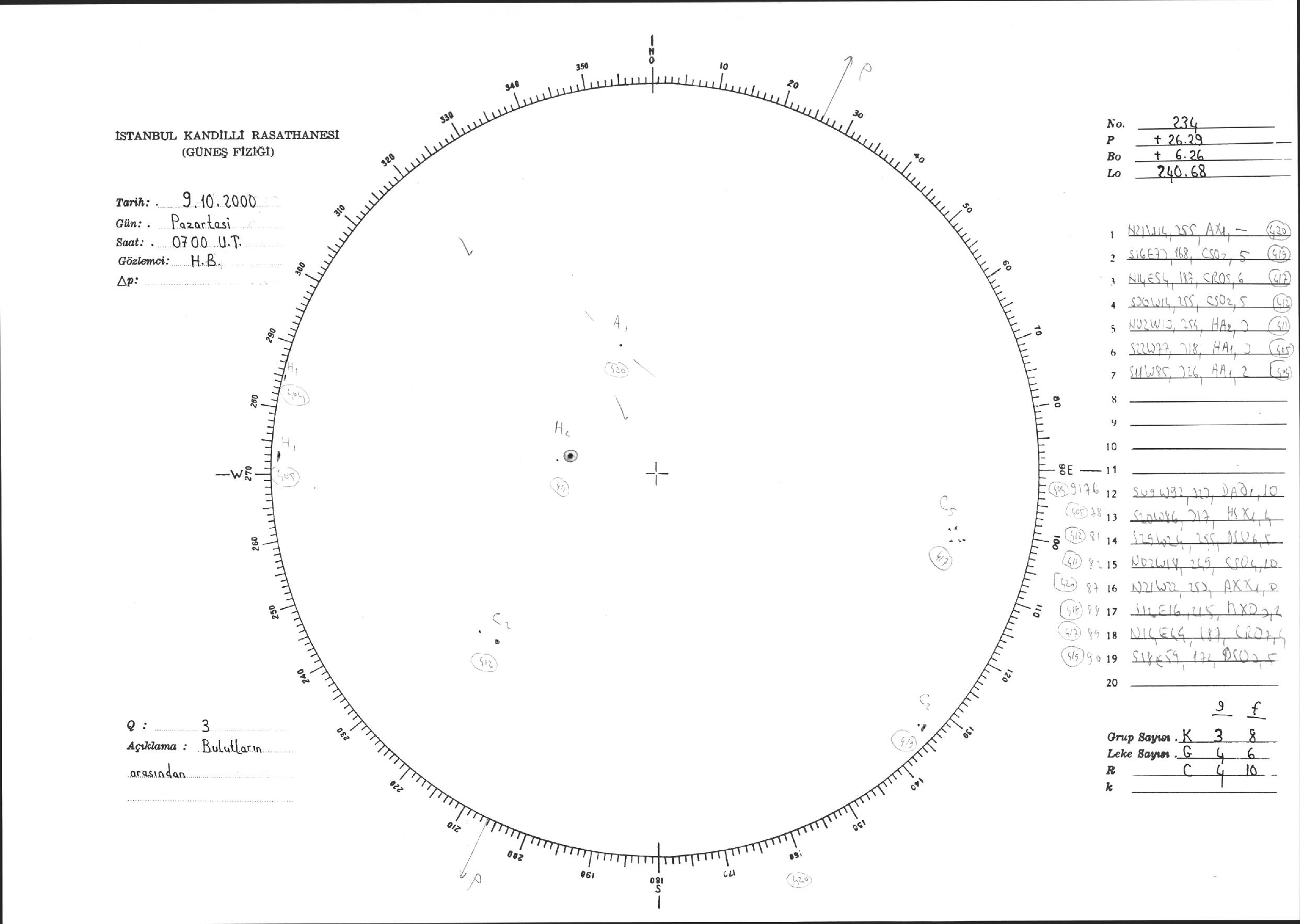 Güneş Lekesi Çizimi - 09.10.2000