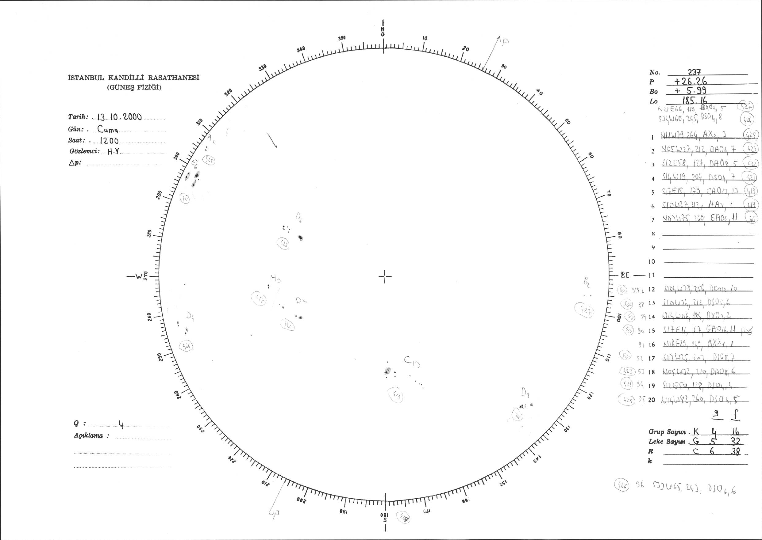 Güneş Lekesi Çizimi - 13.10.2000