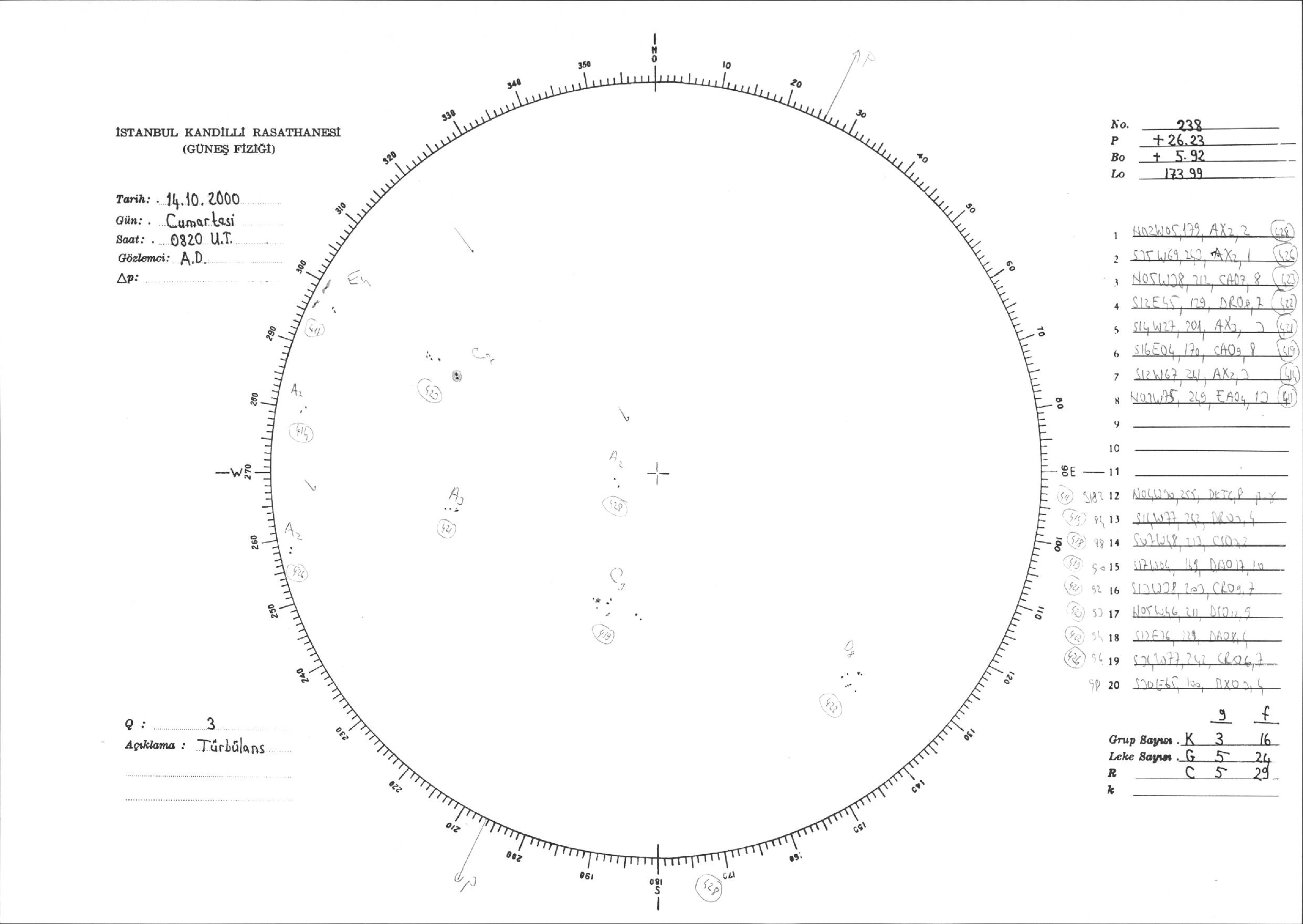 Güneş Lekesi Çizimi - 14.10.2000