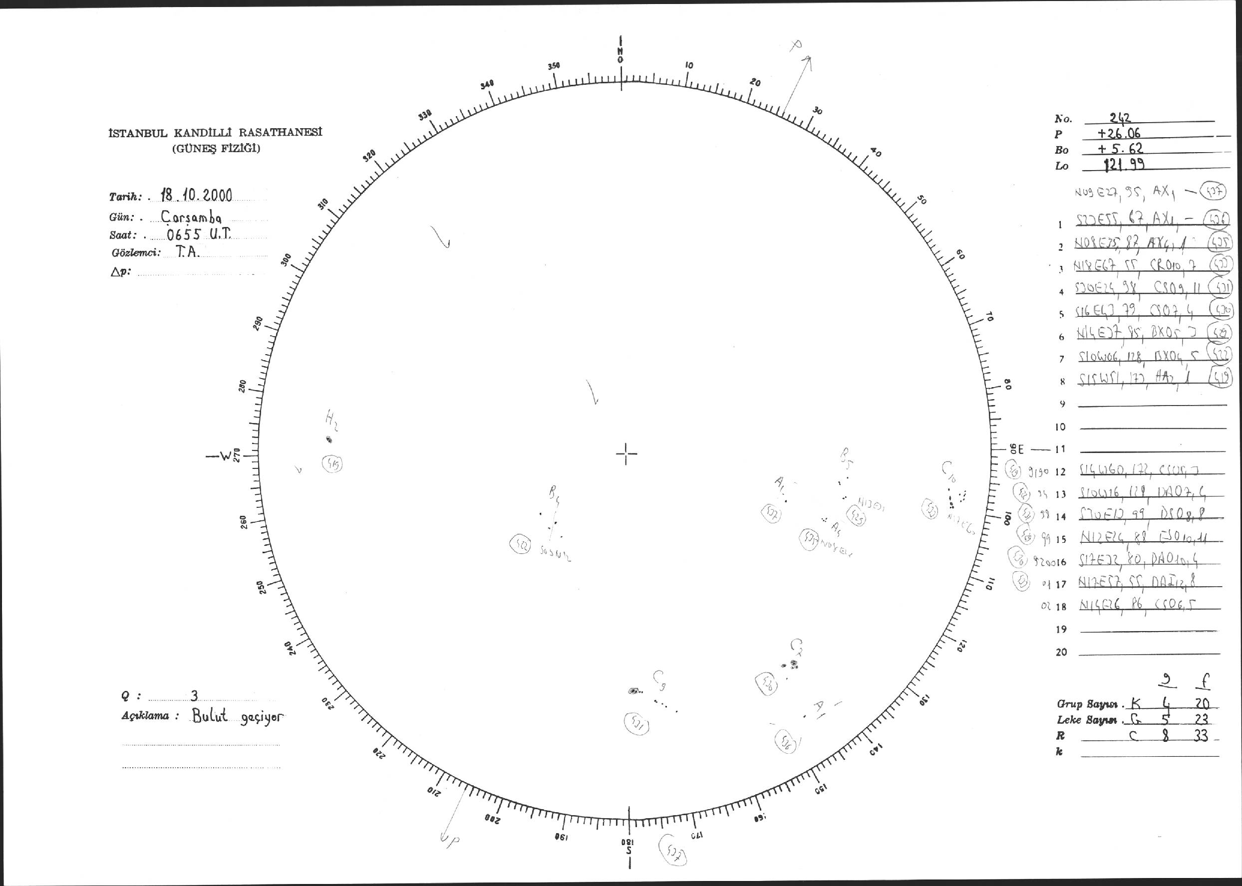 Güneş Lekesi Çizimi - 18.10.2000