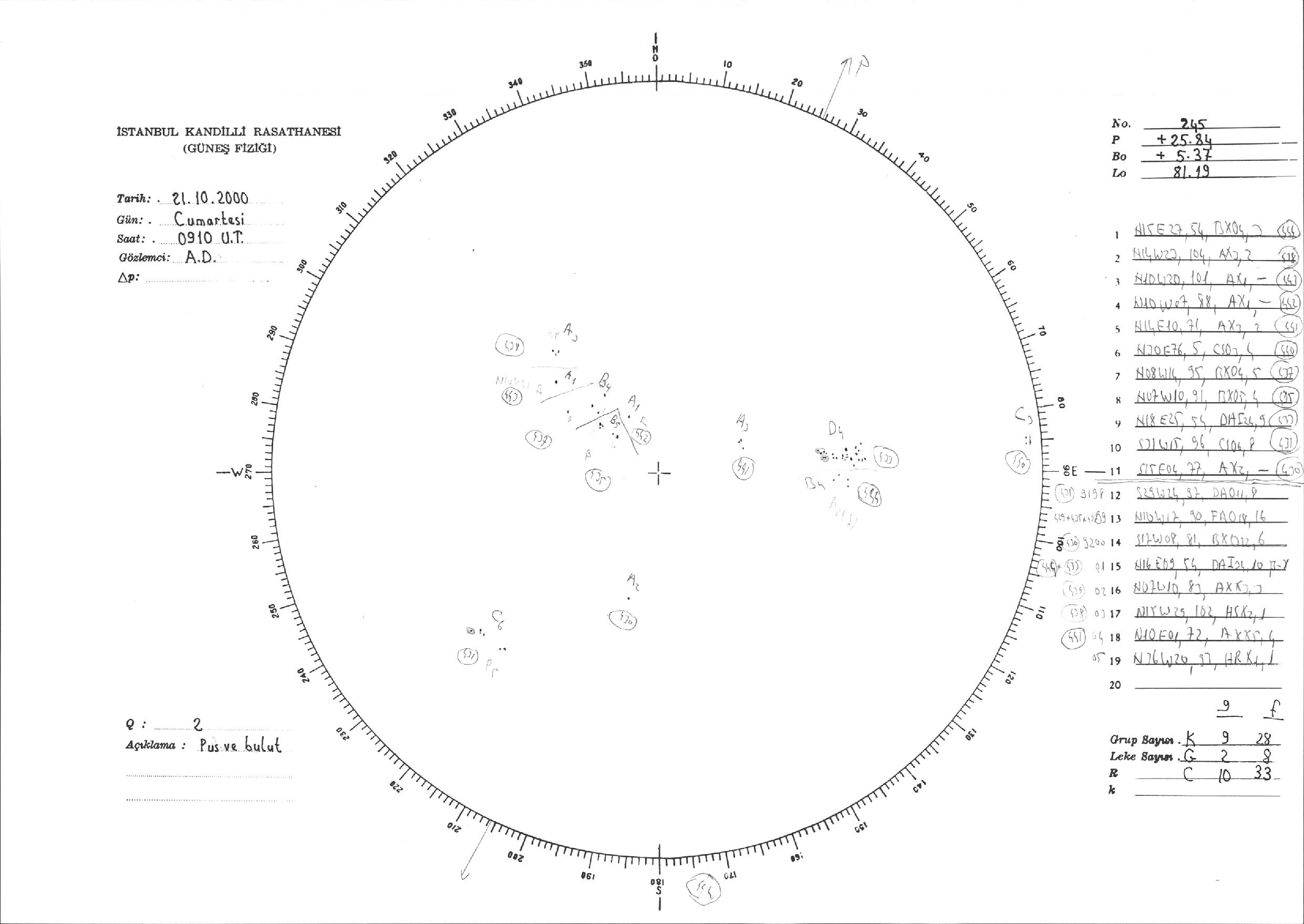 Güneş Lekesi Çizimi - 21.10.2000