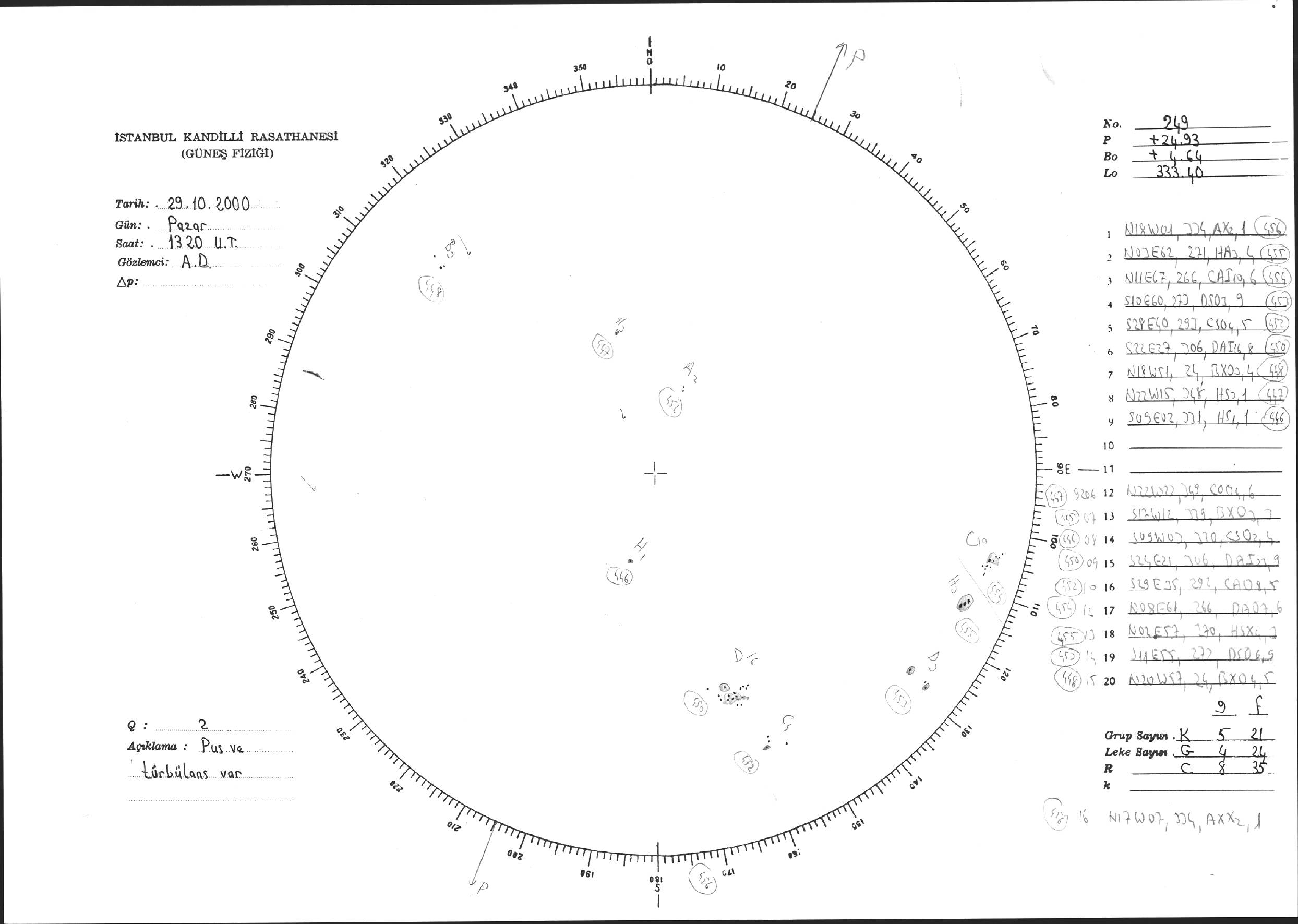 Güneş Lekesi Çizimi - 29.10.2000