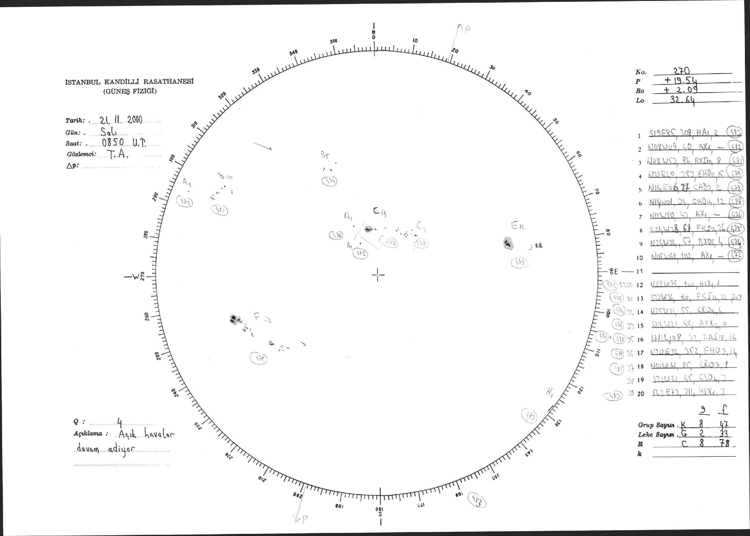 Güneş Lekesi Çizimi - 21.11.2000