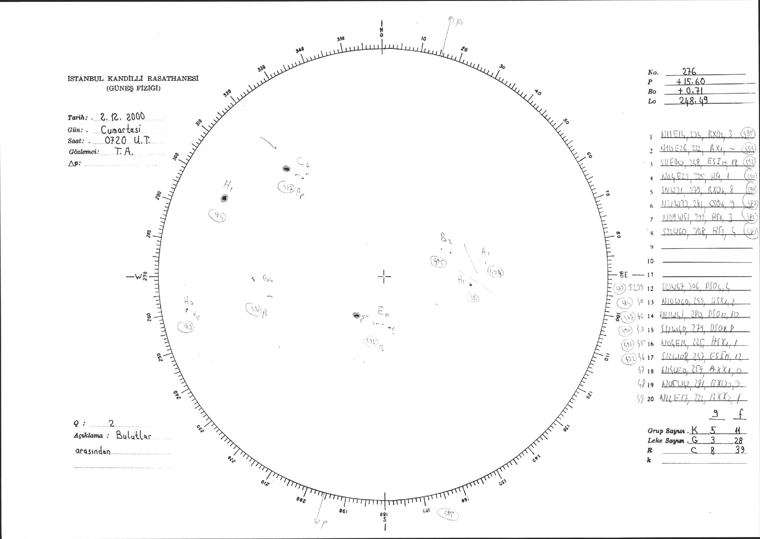 Güneş Lekesi Çizimi - 02.12.2000