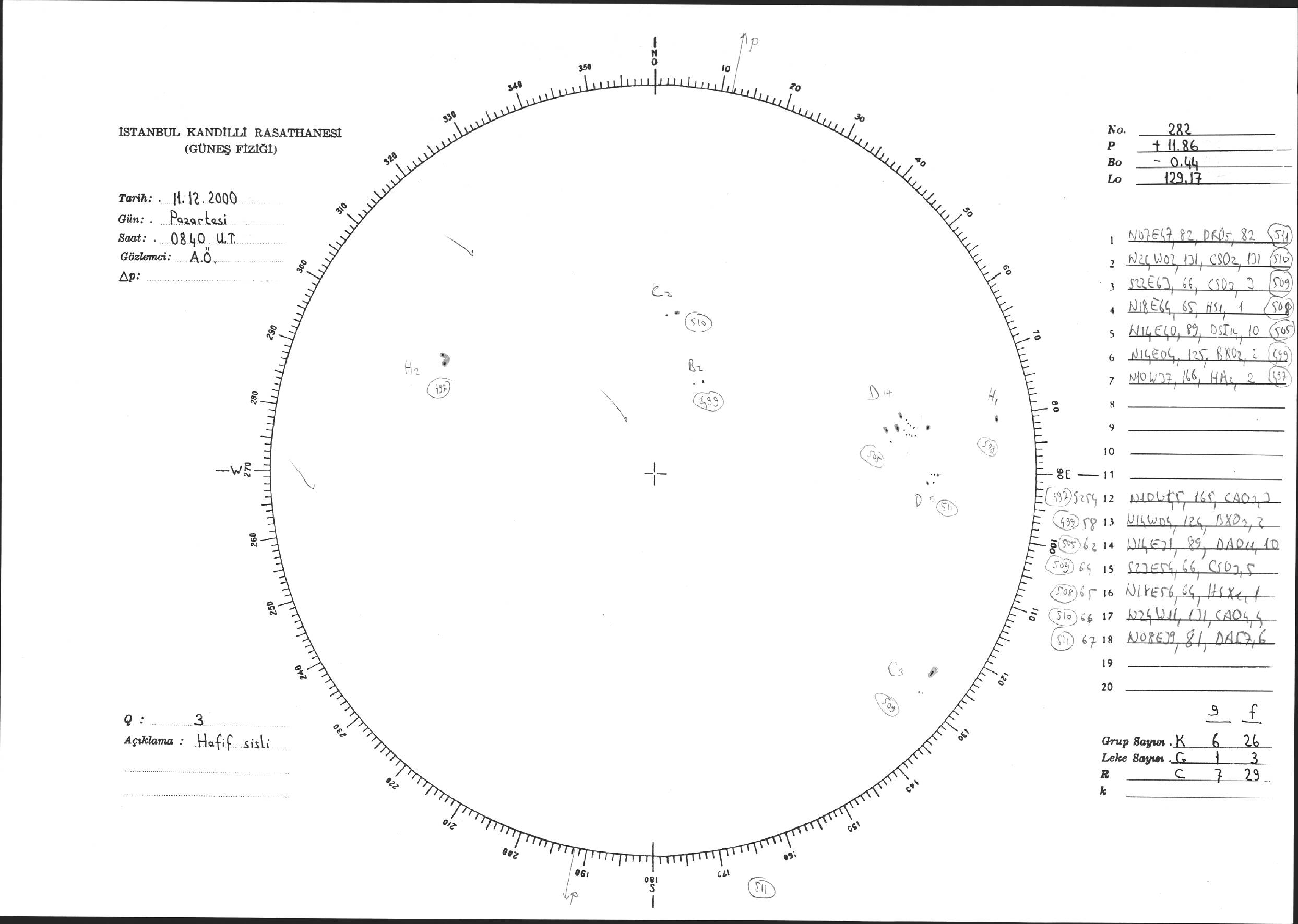 Güneş Lekesi Çizimi - 11.12.2000