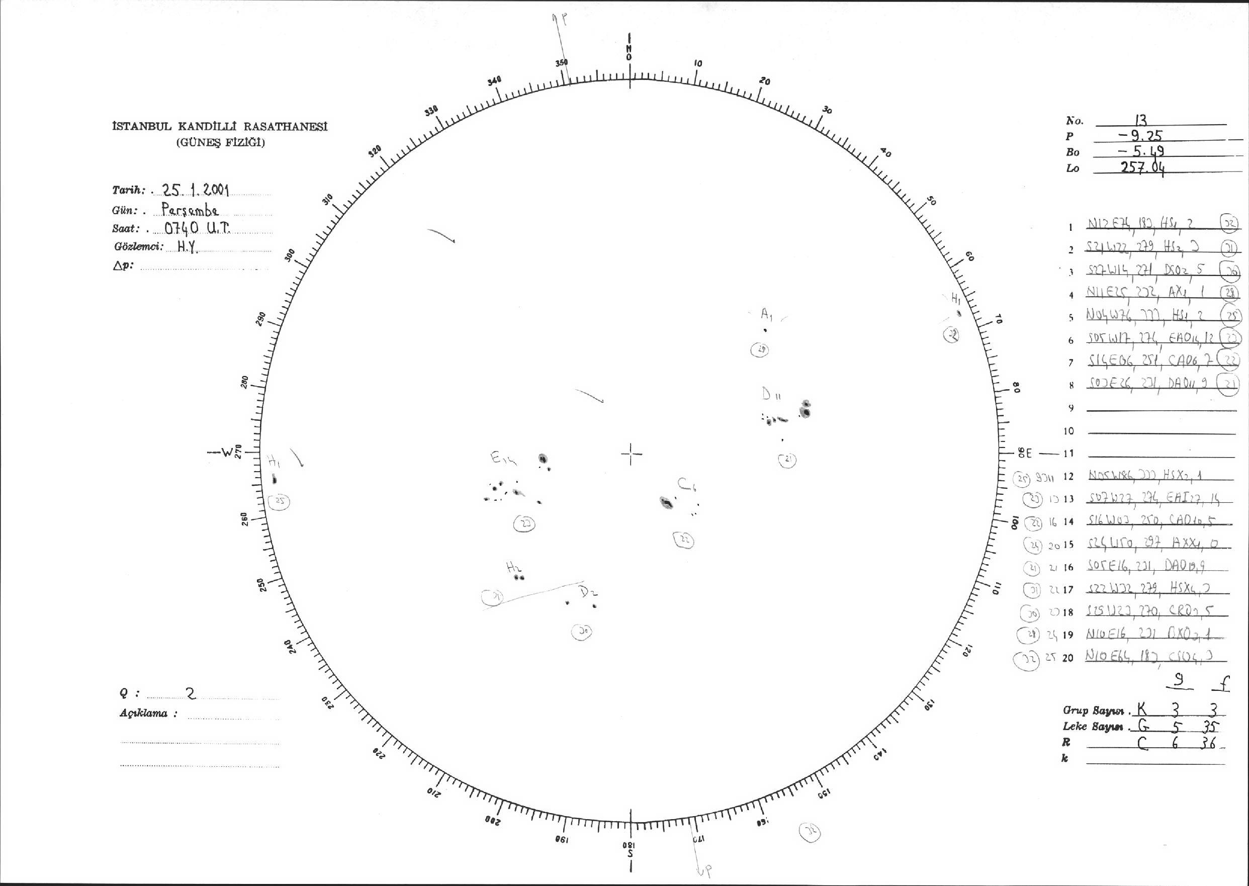 Güneş Lekesi Çizimi - 25.01.2001