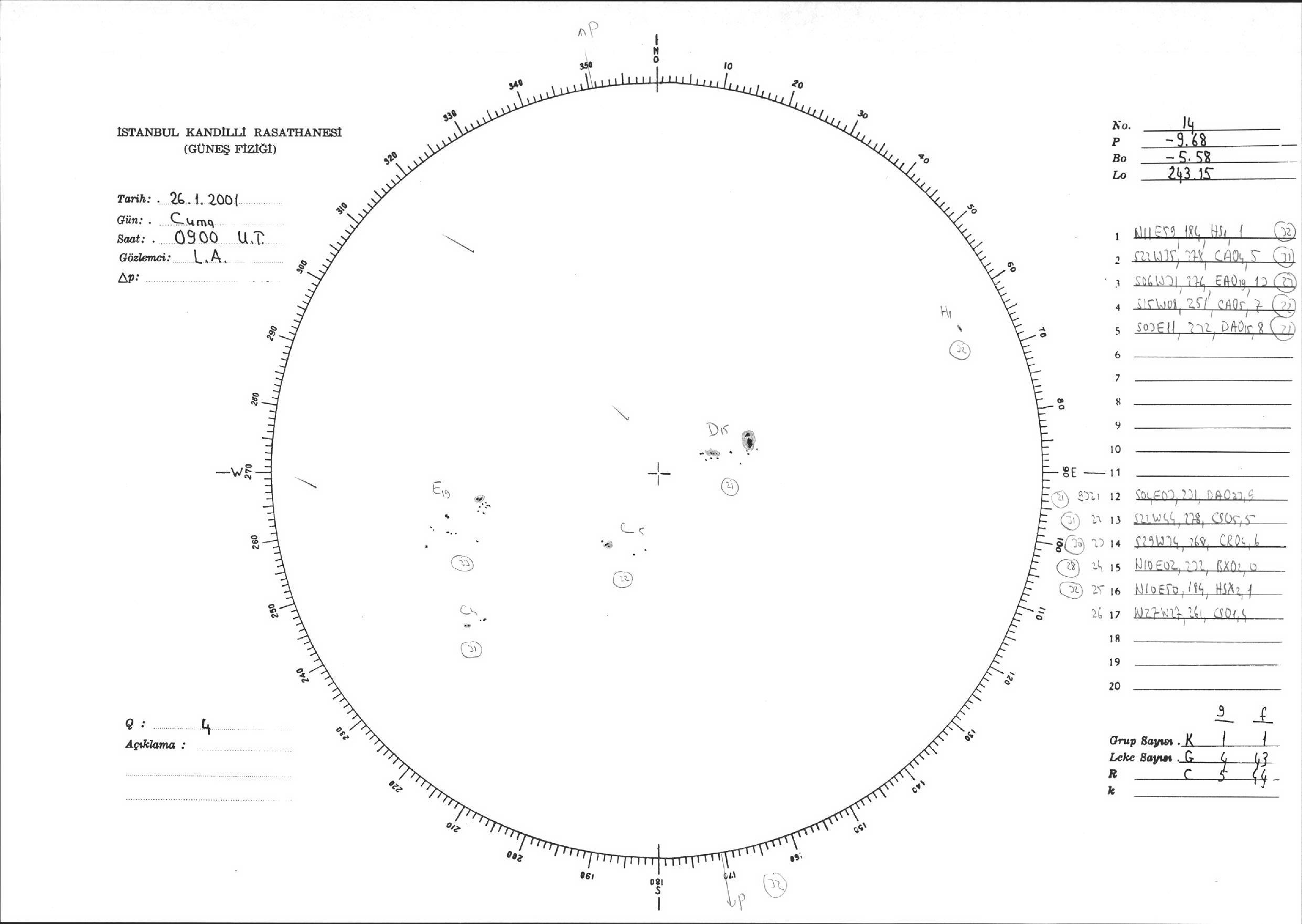 Güneş Lekesi Çizimi - 26.01.2001
