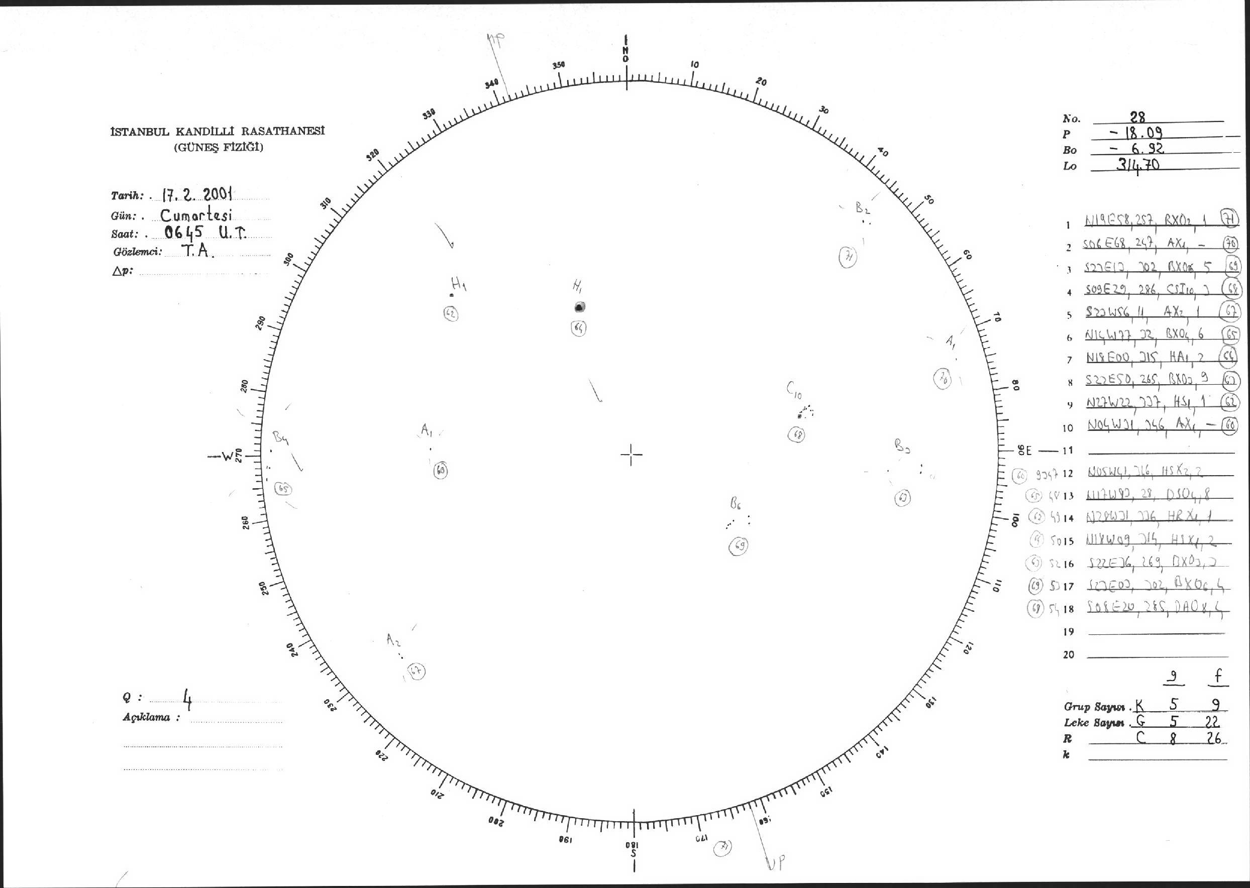 Güneş Lekesi Çizimi - 17.02.2001