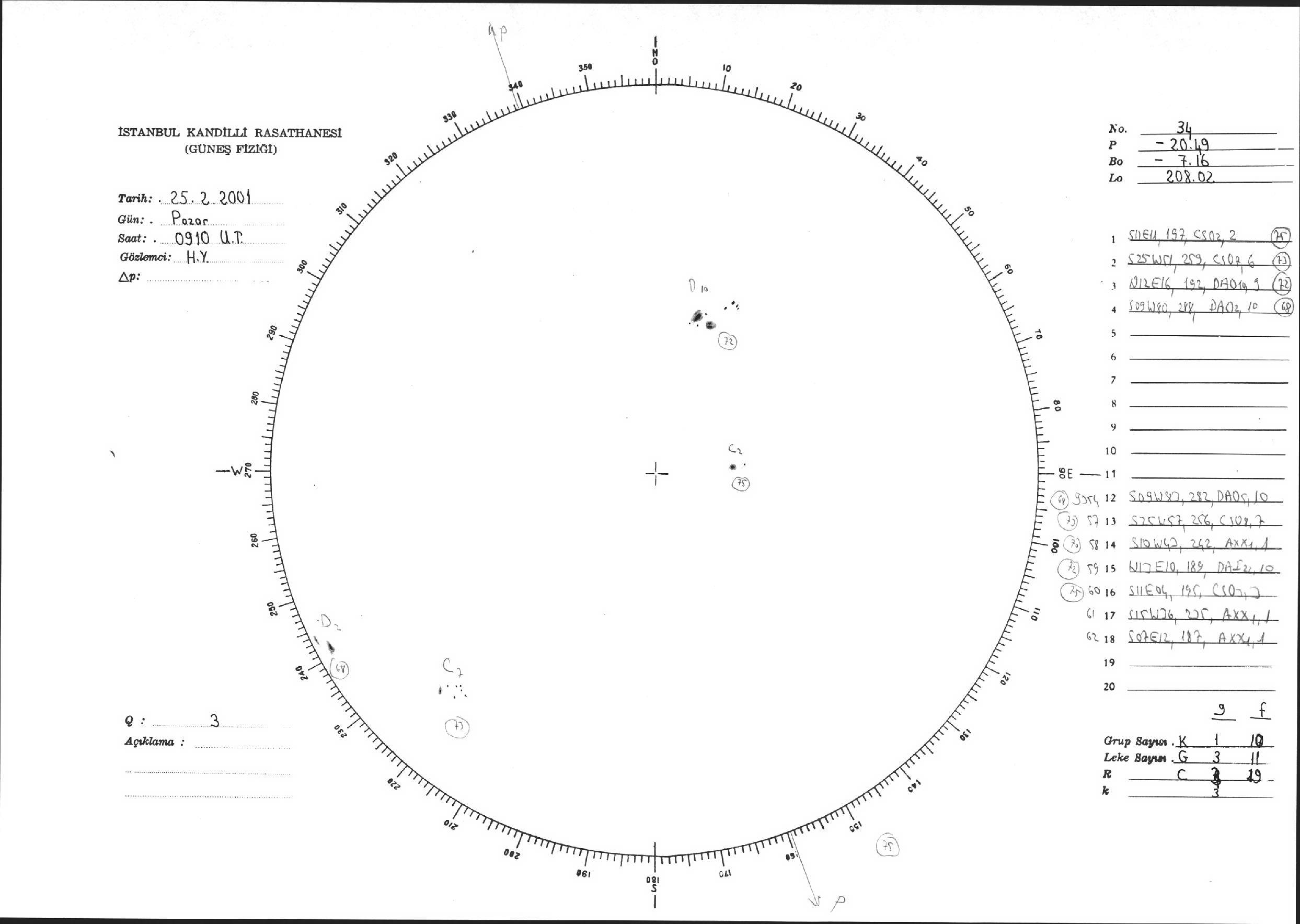 Güneş Lekesi Çizimi - 25.02.2001