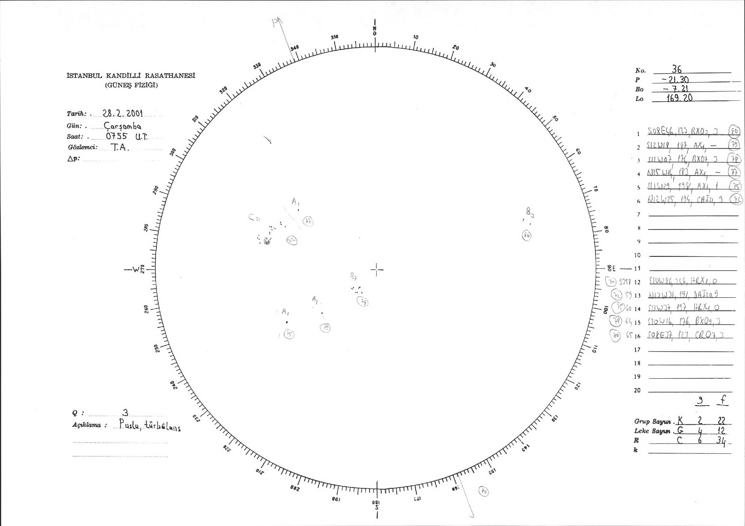 Güneş Lekesi Çizimi - 28.02.2001