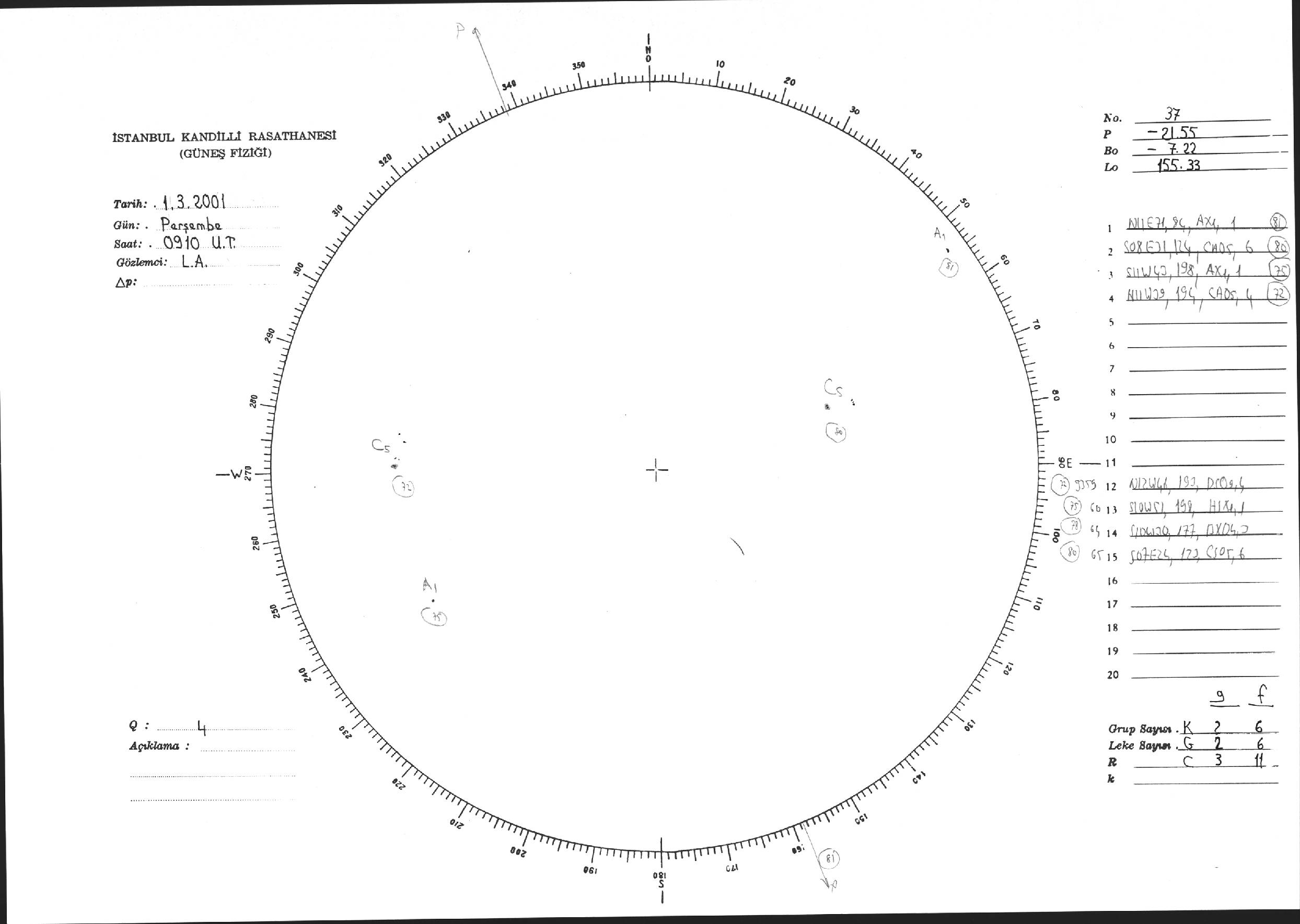 Güneş Lekesi Çizimi - 01.03.2001