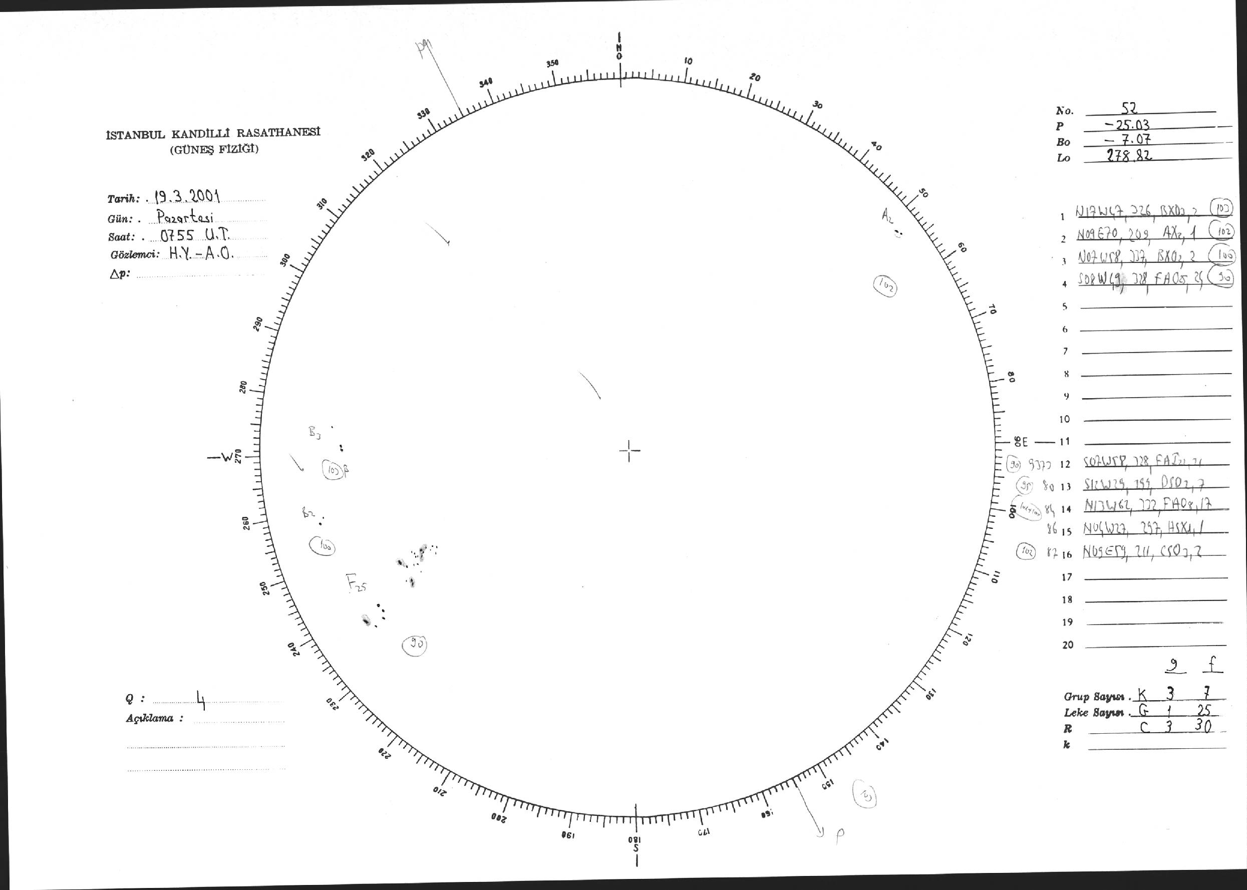 Güneş Lekesi Çizimi - 19.03.2001