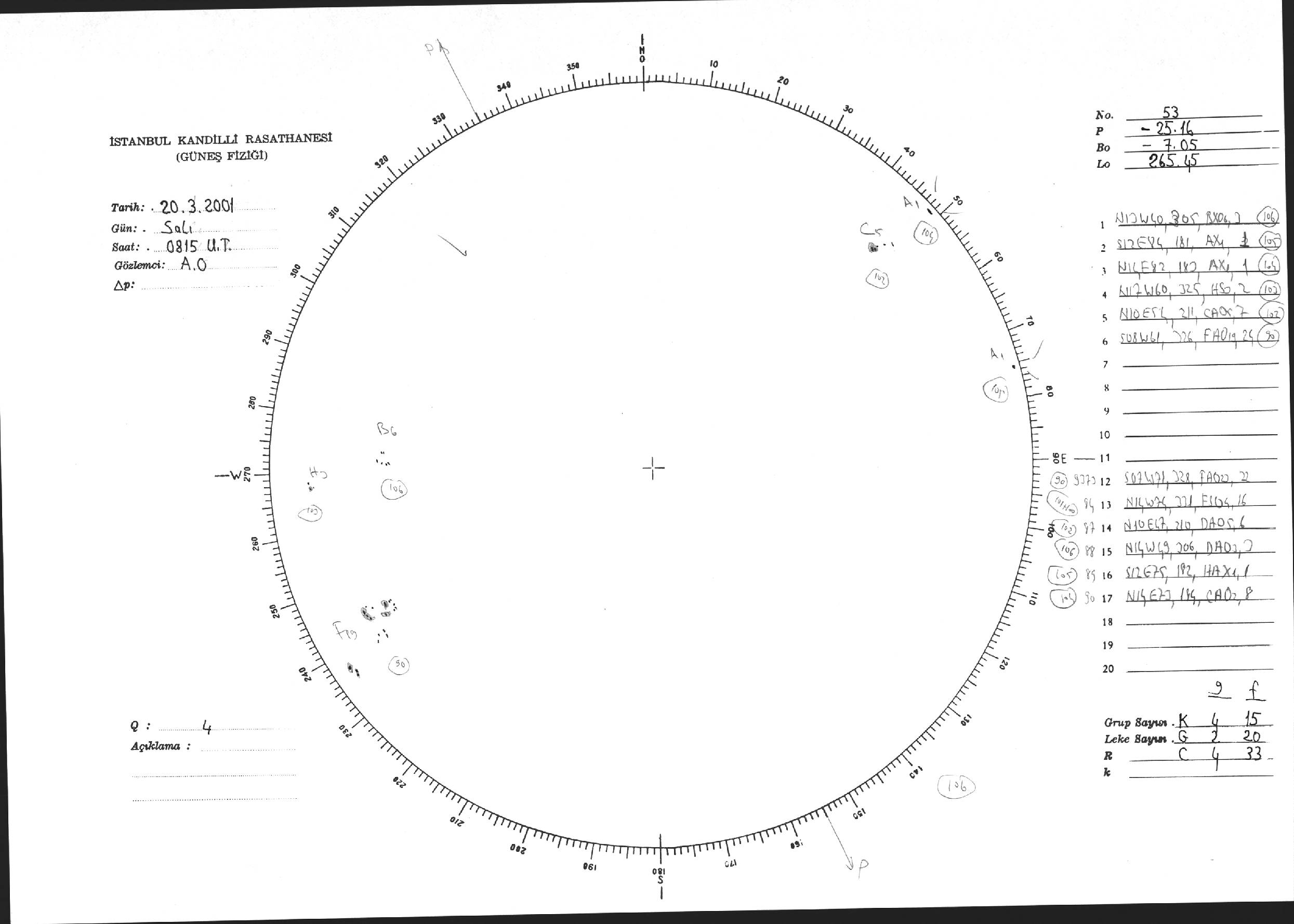 Güneş Lekesi Çizimi - 20.03.2001
