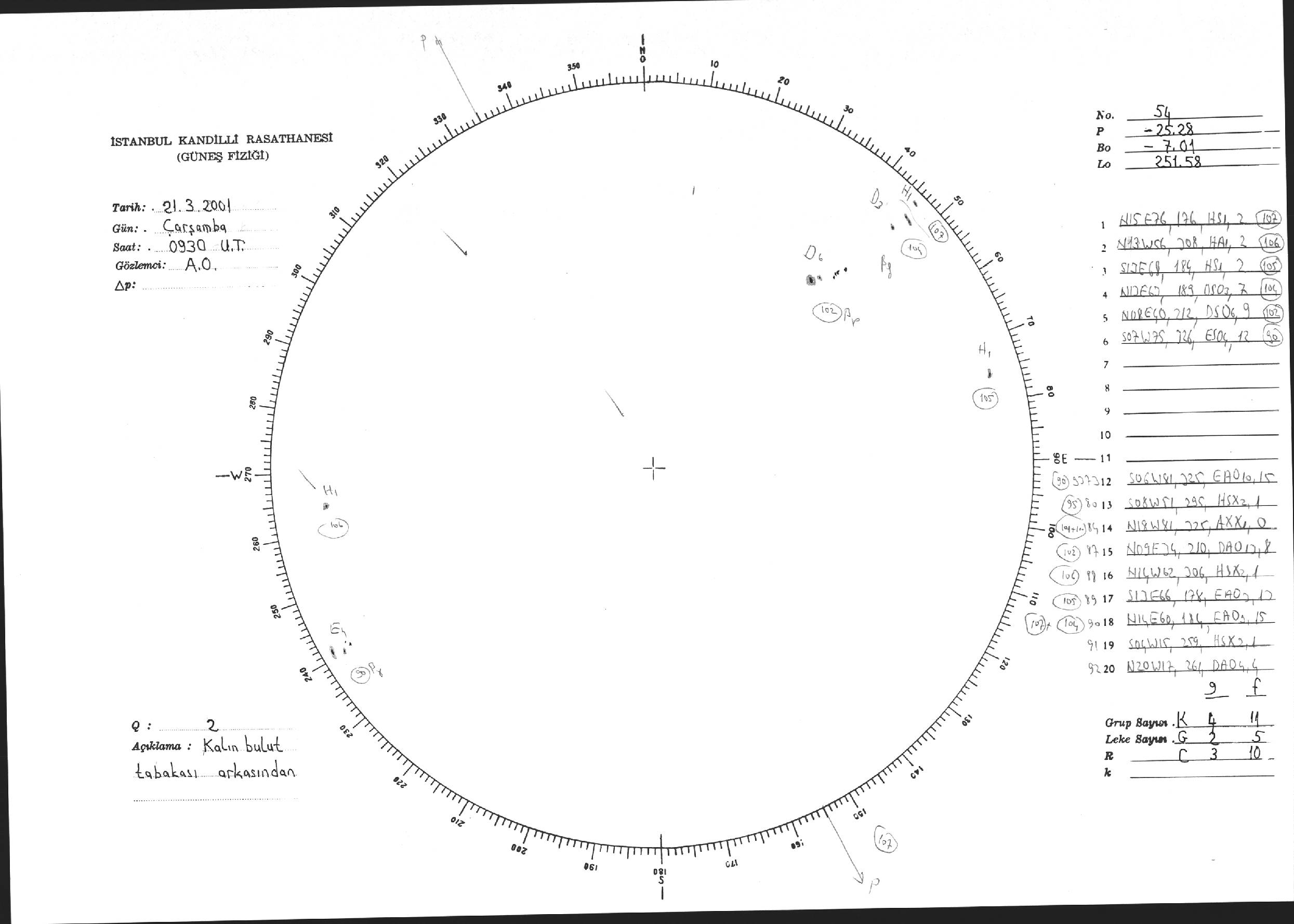 Güneş Lekesi Çizimi - 21.03.2001