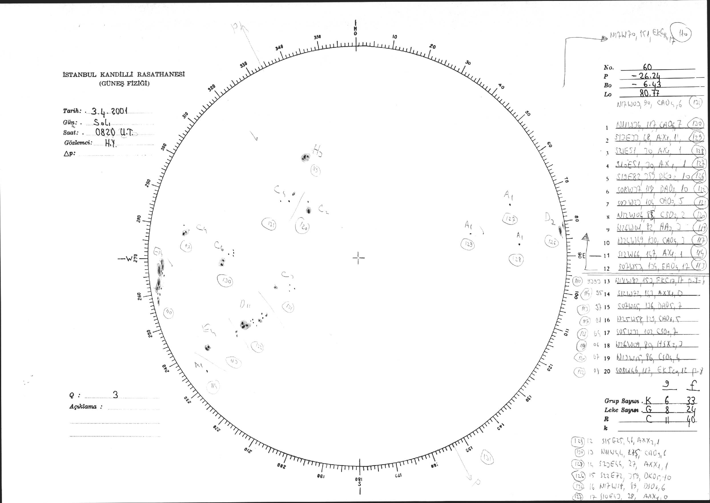 Güneş Lekesi Çizimi - 03.04.2001