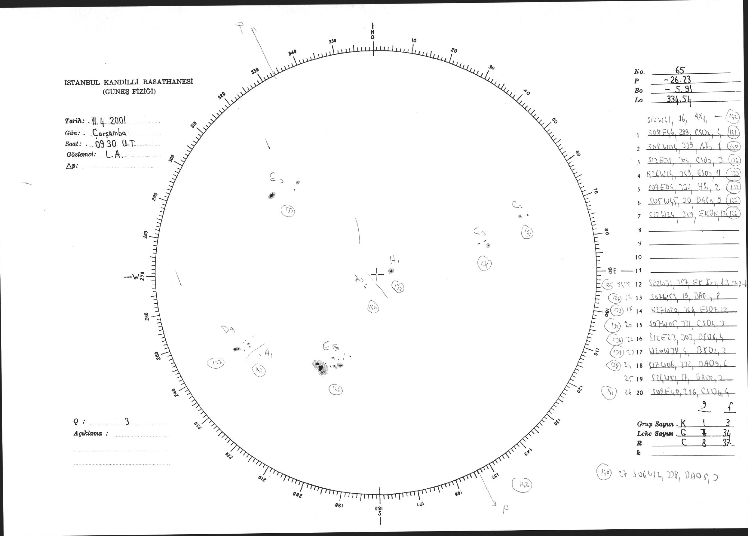 Güneş Lekesi Çizimi - 11.04.2001