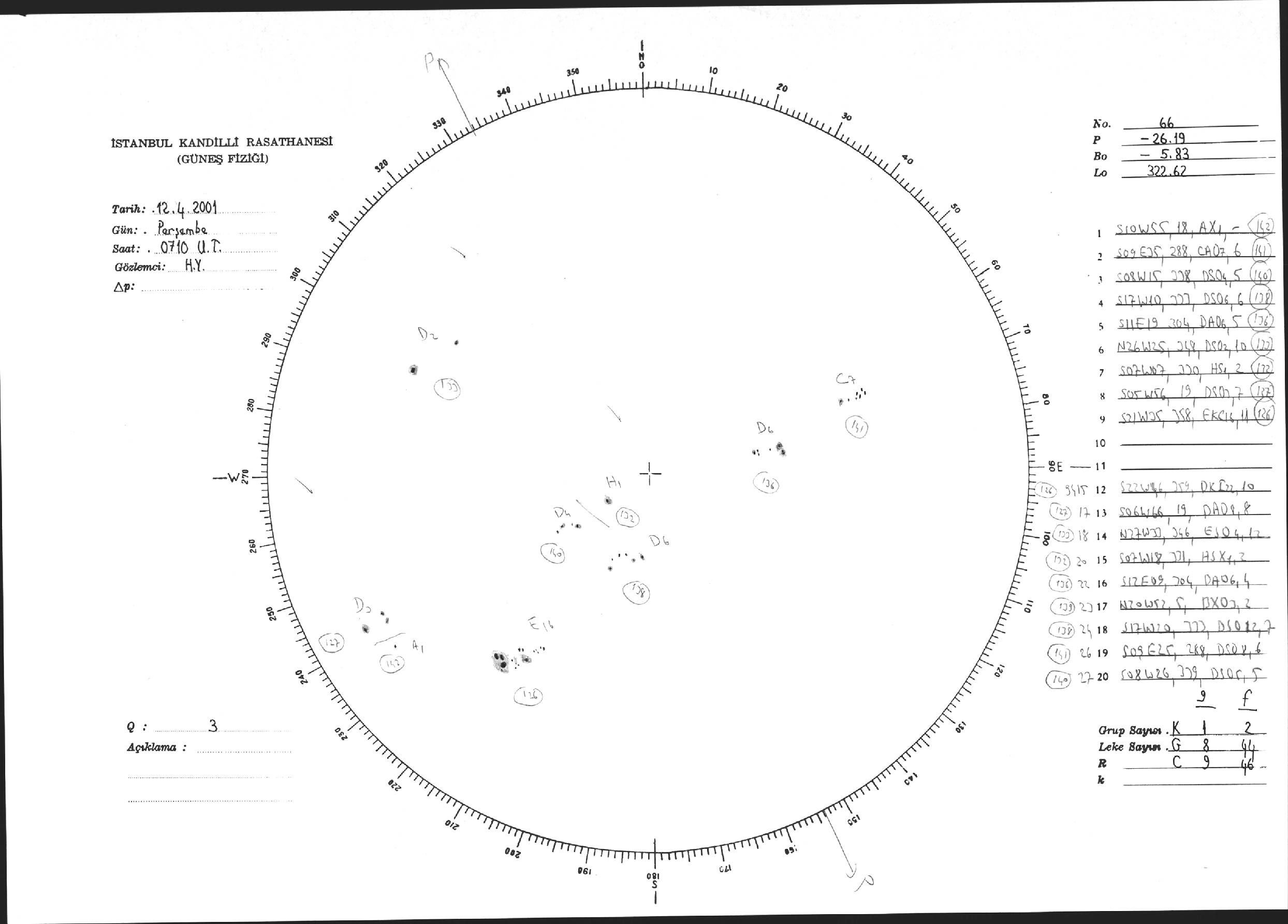 Güneş Lekesi Çizimi - 12.04.2001