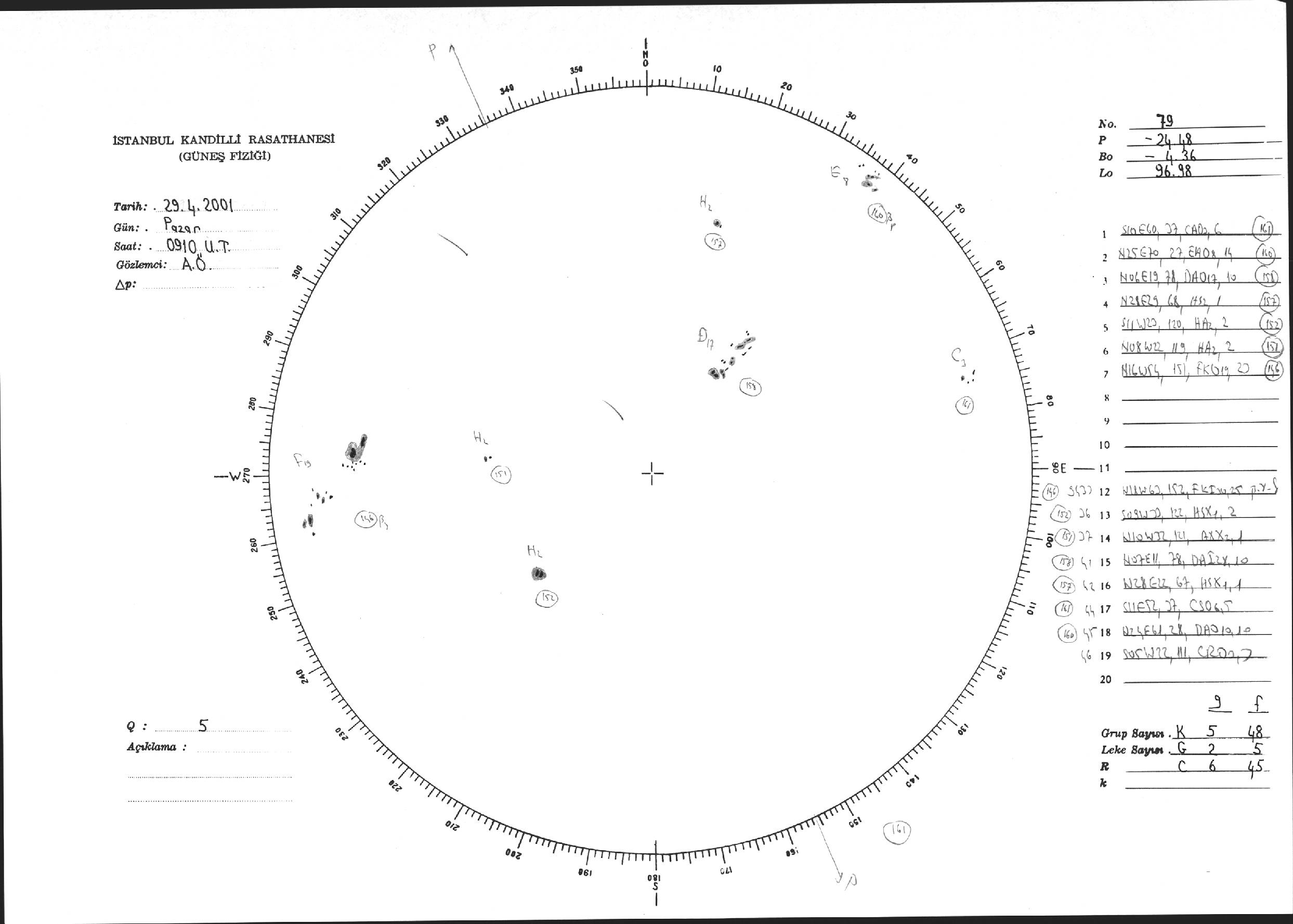 Güneş Lekesi Çizimi - 29.04.2001