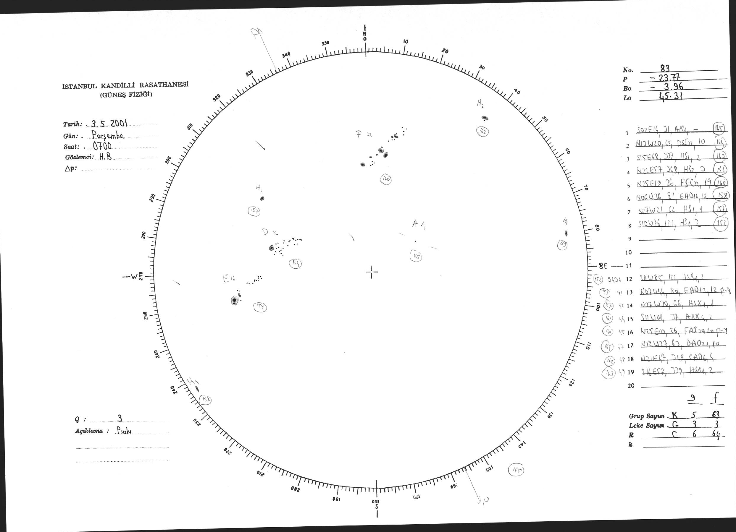 Güneş Lekesi Çizimi - 03.05.2001