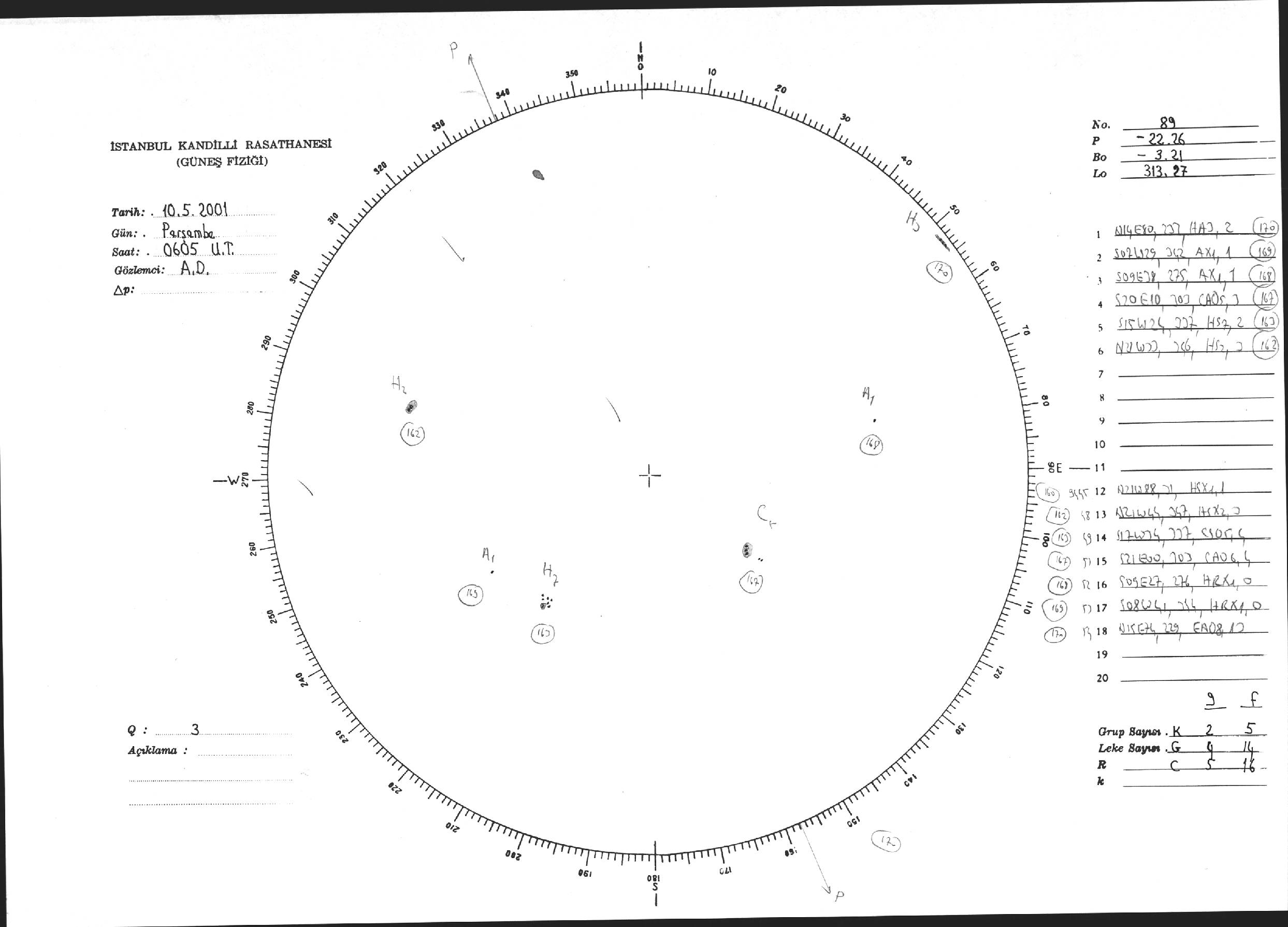 Güneş Lekesi Çizimi - 10.05.2001