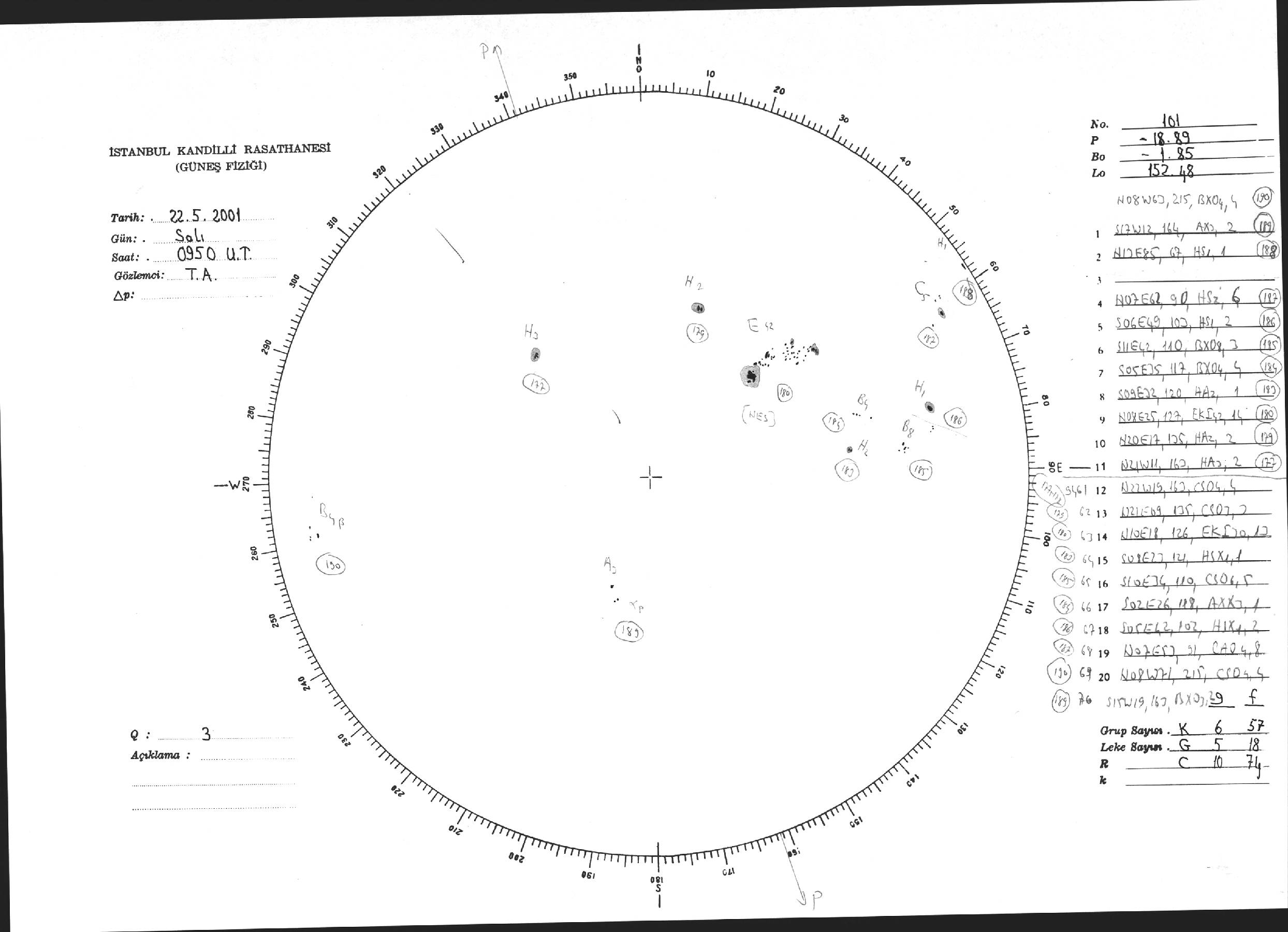 Güneş Lekesi Çizimi - 22.05.2001