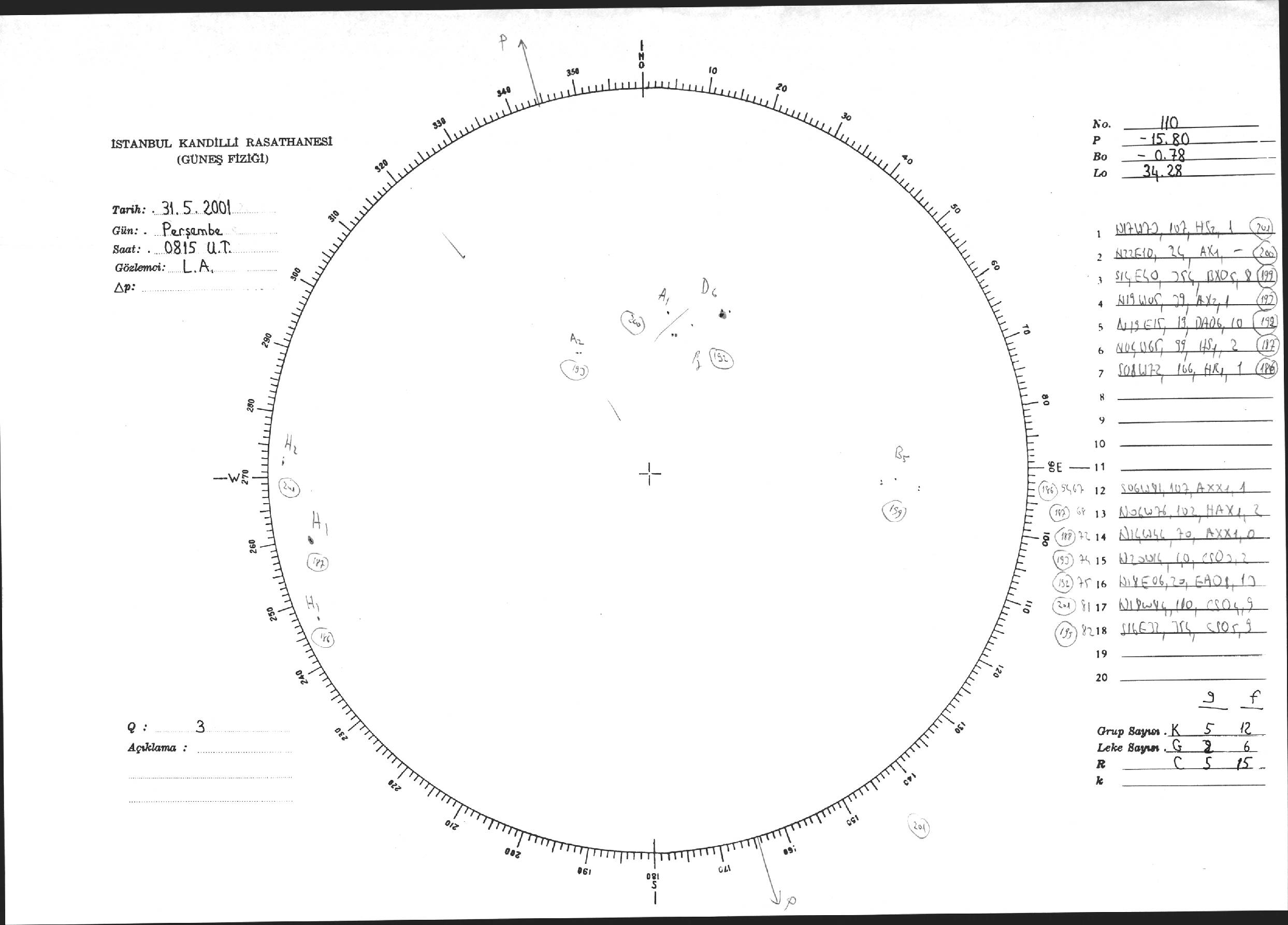 Güneş Lekesi Çizimi - 31.05.2001