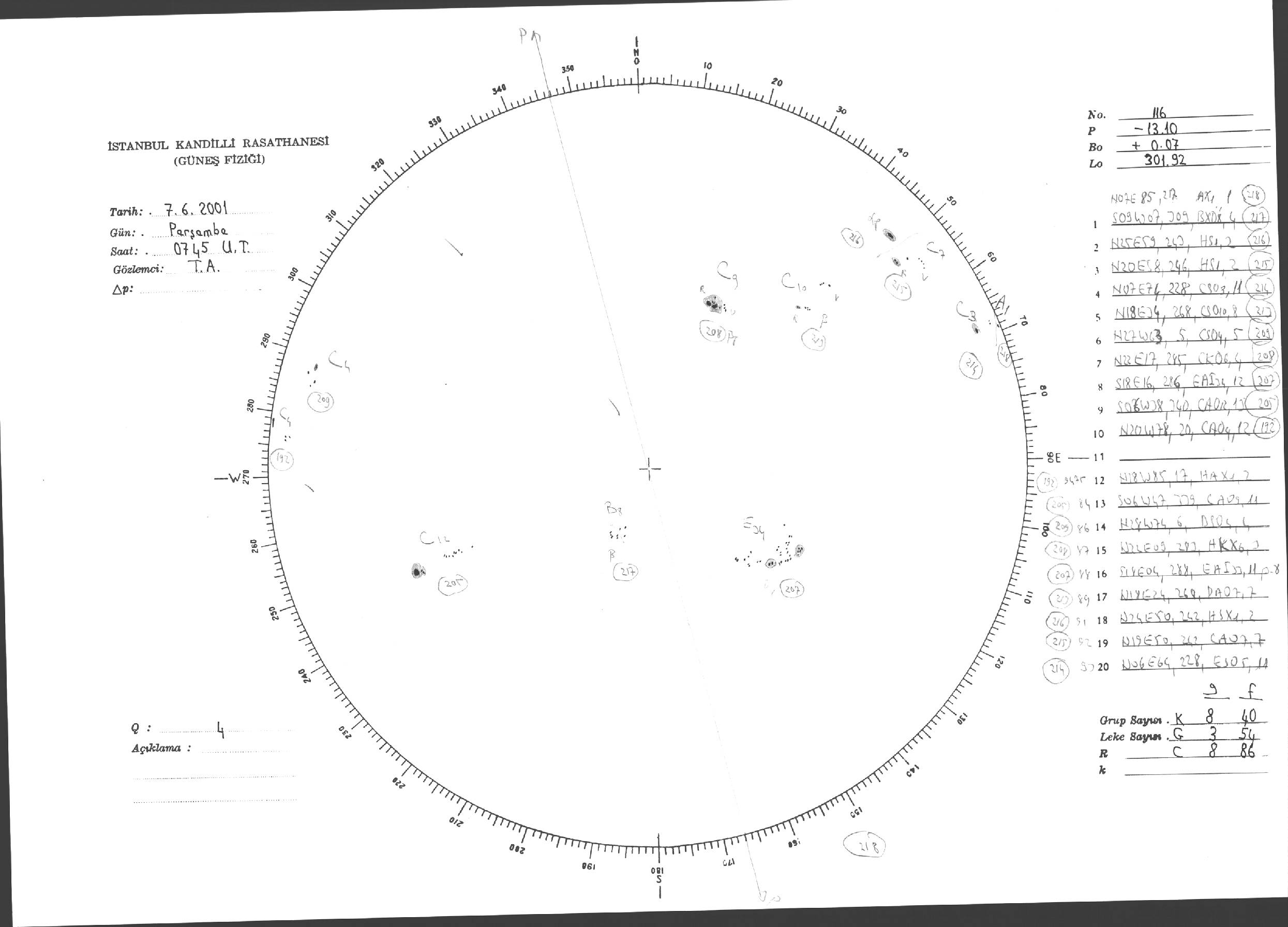 Güneş Lekesi Çizimi - 07.06.2001